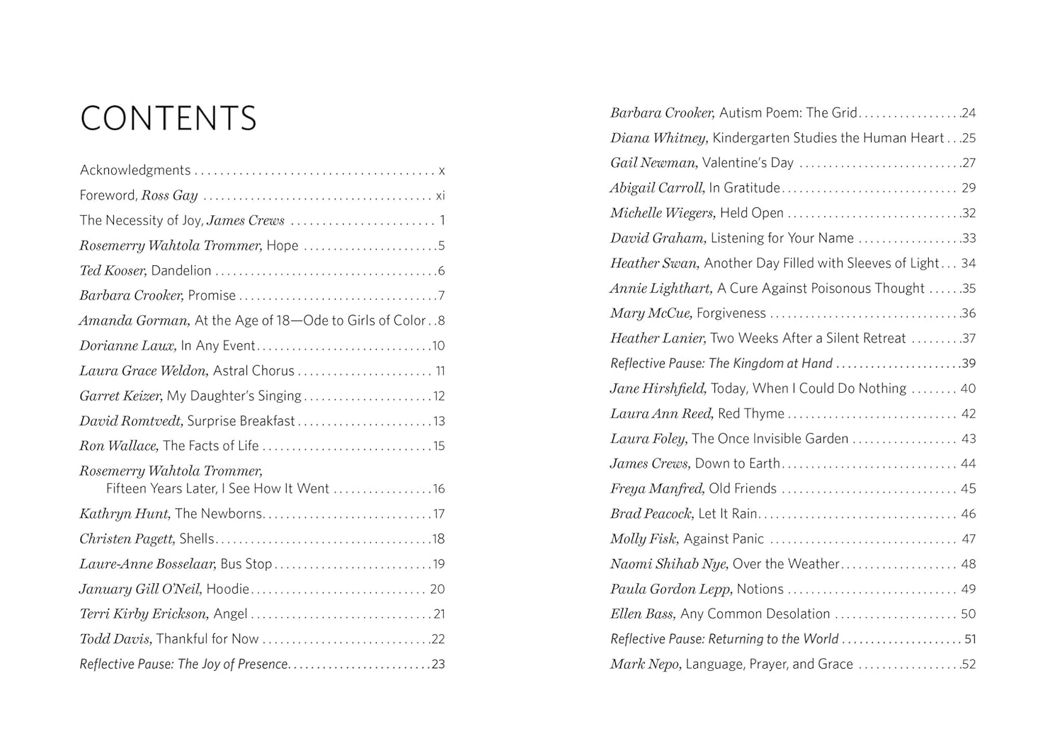 У збірці також представлені нові твори Теда Кузера, Маркa Непо та Джейн Хіршфілд.