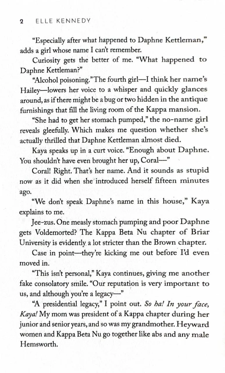 A sexy standalone novel from New York Times and international bestselling author Elle Kennedy She's the one girl he shouldn't want . . . Everyone says opposites attract. And they must be right, because there's no logical reason why I'm so drawn to Colin Fitzgerald. I don't usually go for tattoo-covered, video-gaming, hockey-playing nerd-jocks who think I'm flighty and superficial. His narrow view of me is the first strike against him. It doesn't help that he's buddy-buddy with my brother. And that his best friend has a crush on me. And that I just moved in with them. Oh, did I not mention we're roommates? I suppose it doesn't matter. Fitzy has made it clear he's not interested in me, even though the sparks between us are liable to burn our house down. I'm not the kind of girl who chases after a man, though, and I'm not about to start. I've got my hands full dealing with a new school, a sleazy professor, and an uncertain future. So if my sexy brooding roomie wises up and realizes what he's missing?