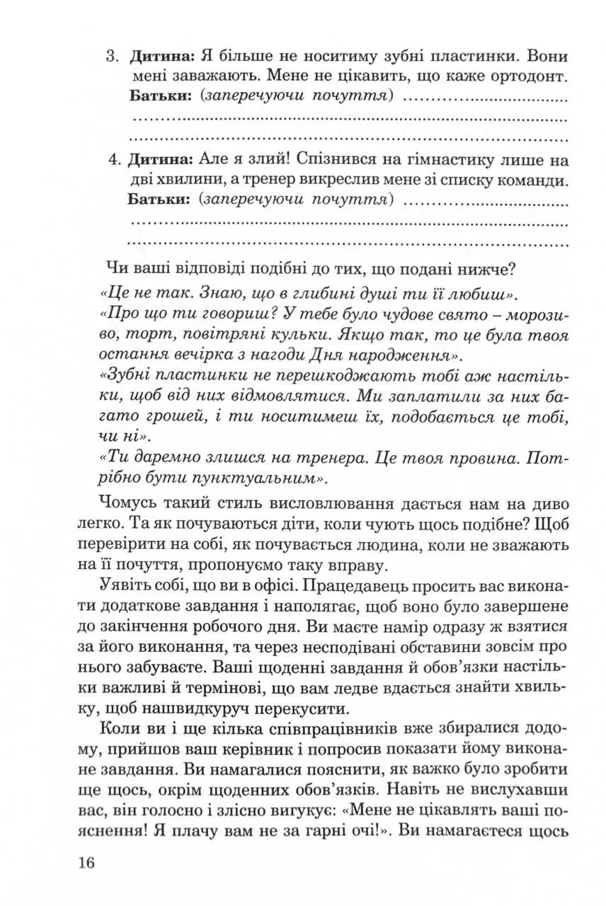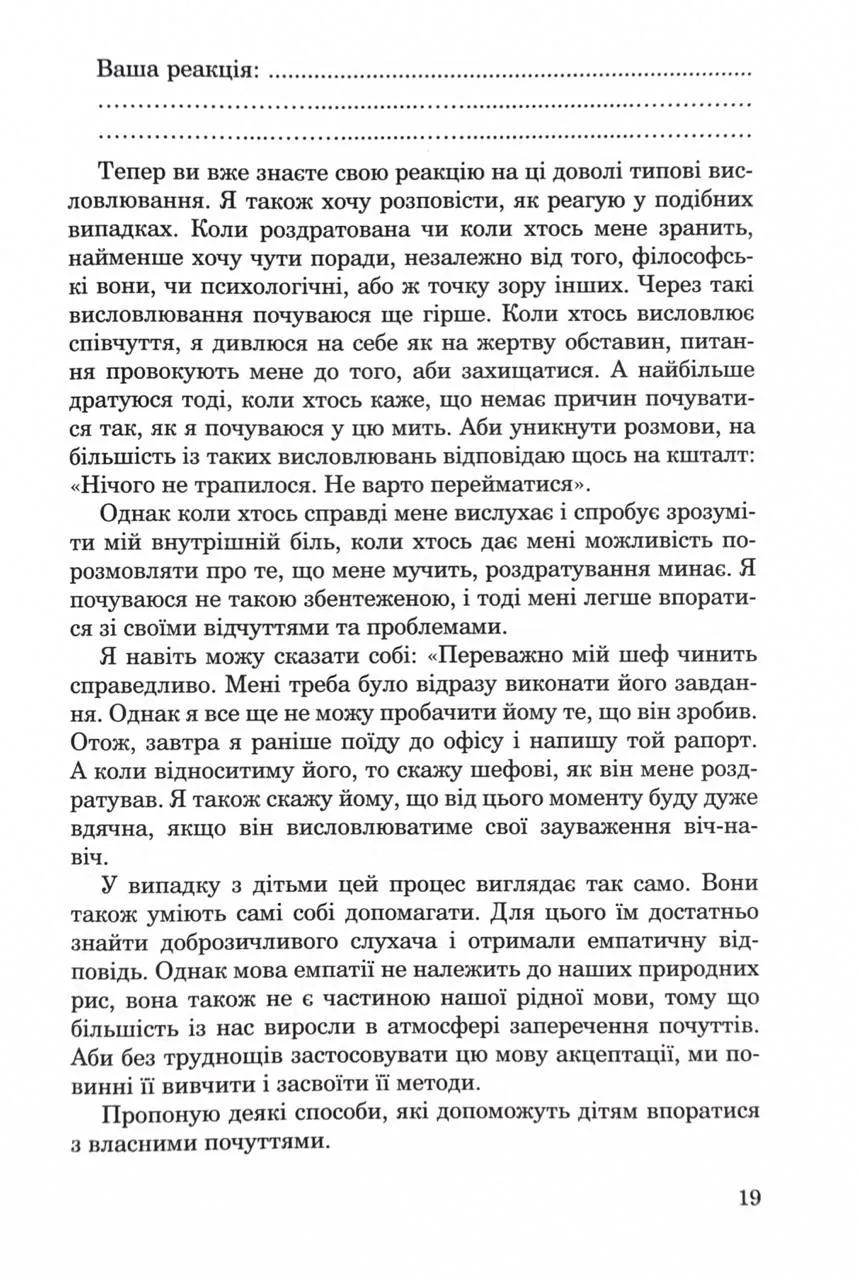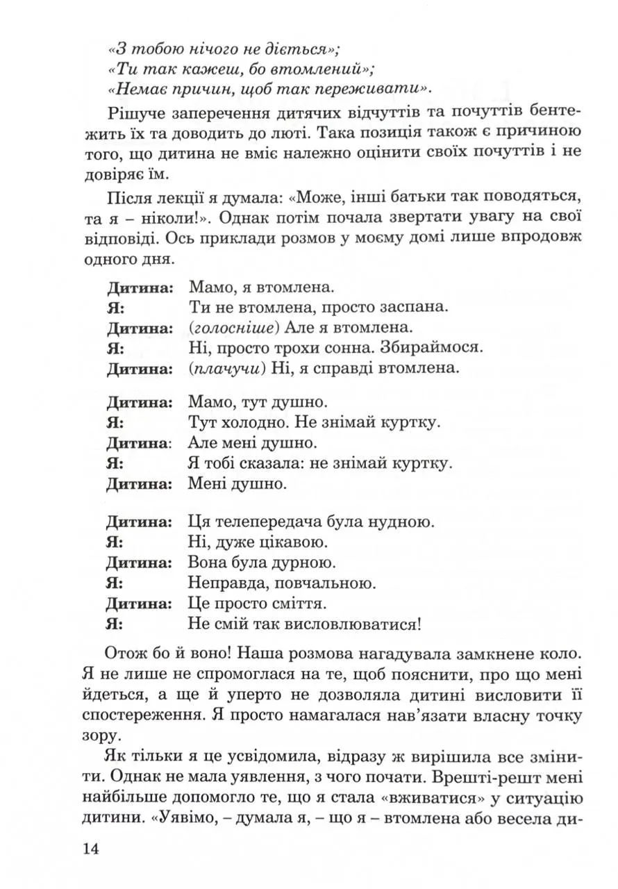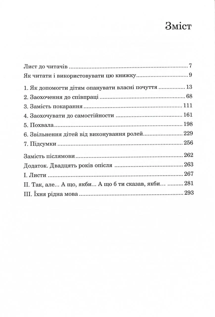 Це повчальне та практичне видання допоможе зменшити конфлікти в родині та навчить розв’язувати проблеми мирно й з розумінням. Авторки стверджують: щоб змінити поведінку дитини, потрібно змінити спосіб спілкування з нею, і доводять це на прикладах із життя.