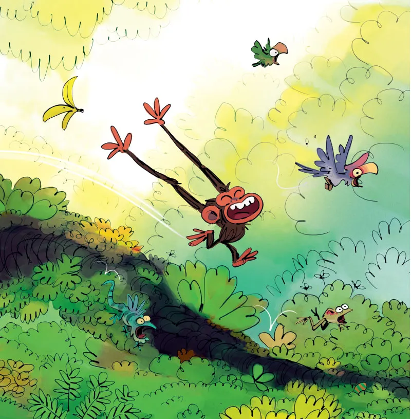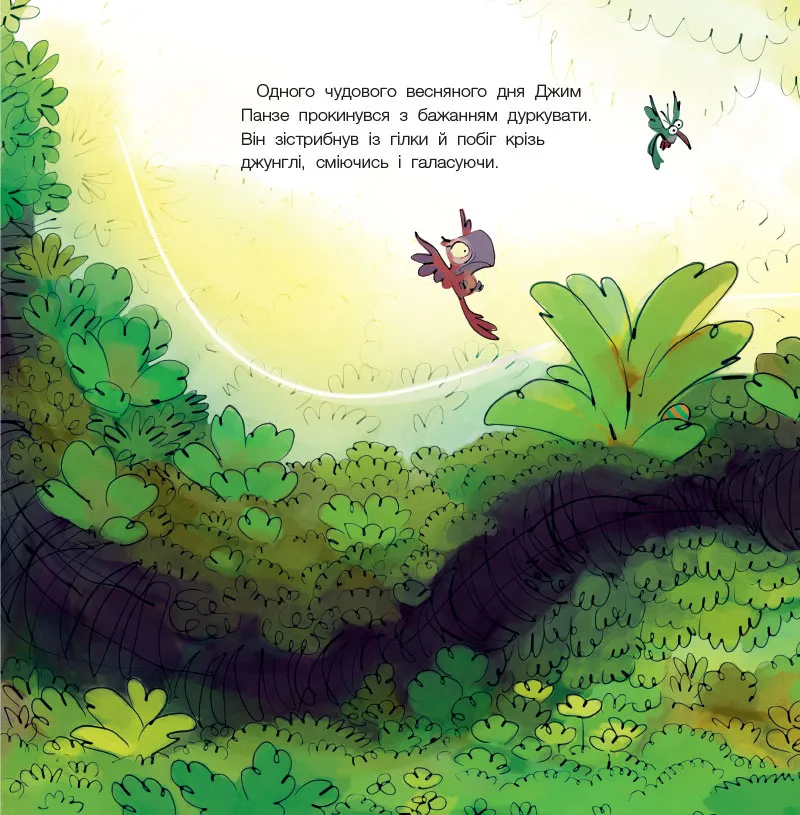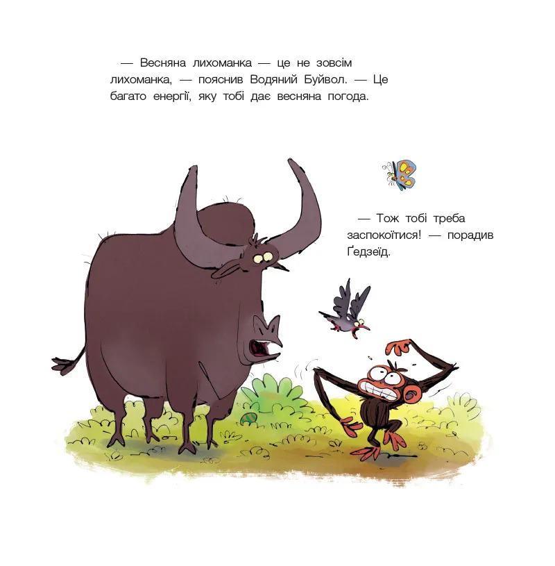 З початком весни все змінюється — повітря наповнюється ароматами, звірята прокидаються, і навколо панує життєрадісність. Але головному герою книжки не до усмішок. Та завдяки друзям мавпеня крок за кроком відкриває для себе весняну магію. Рух, ігри, стрибки, шалена енергія — ось що викликає таку весняну лихоманку!