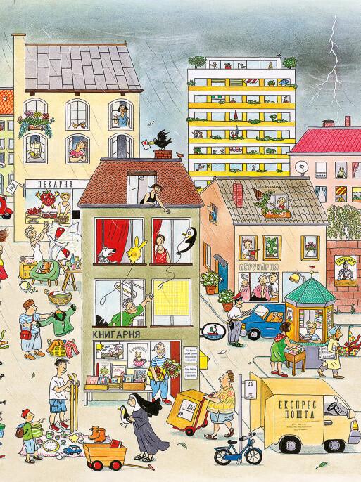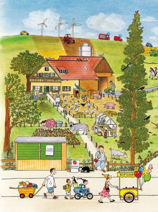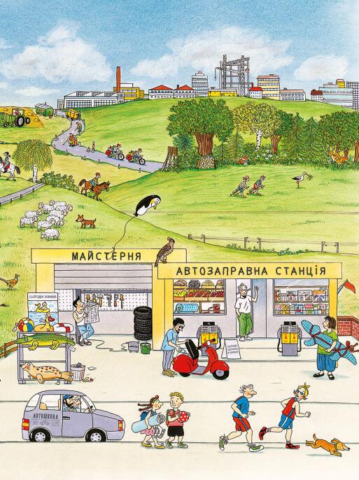 У містечку Мала Метушня достигають черешні, діти бігають босоніж, а грозові хмари, пролившись рясним дощем, швидко поступаються місцем яскравому сонцю. Ротраут Сузанне Бернер розповідає безліч маленьких історій: про день народження Сьюзі в парку, цікавинки з барахолки, загубленого пінгвіна та мишку, яка ховається на кожній сторінці.