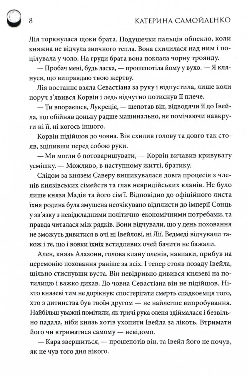 У другій книзі серії головна героїня Ріна опиняється у безвиході. Вона одна, замкнена у похмурих стінах Лавариску разом із Натаїром. Корвін, скоріш за все, загинув, а Івейл – зрадив. Сили покидають Ріну, а навколо – лише морок, відчайдушний спів Морани та дитячі крики, що підштовхують її до божевілля.