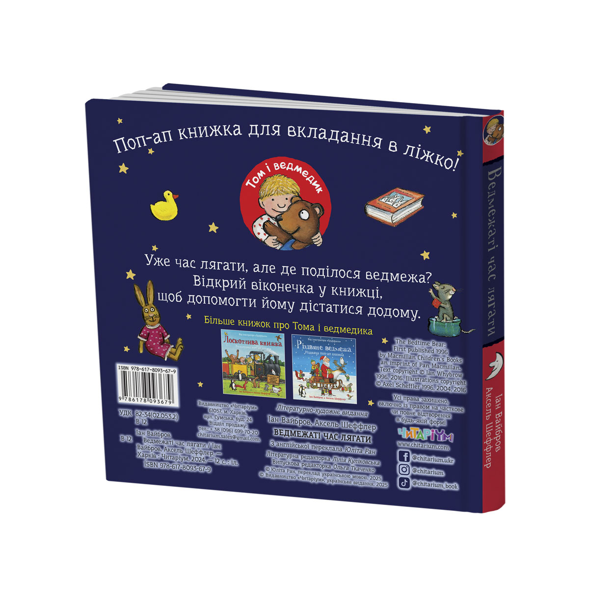 Книга Ведмежаті час лягати автора Іан Вайбров — це захоплива історія про маленького ведмедика, який вирушає в нічну пригоду дорогою до свого ліжечка. На сторінках книги дитина знайде захопливі завдання, цікаві сюрпризи та віконечка, які потрібно відкривати, допомагаючи ведмедику завершити його день.