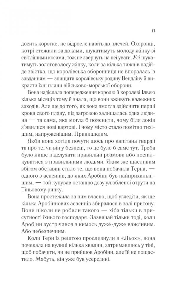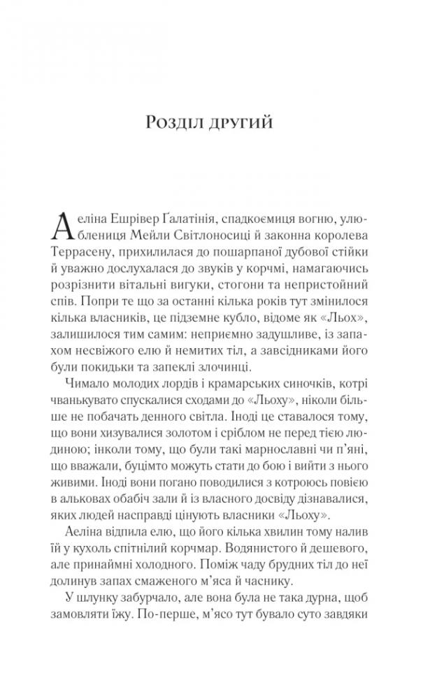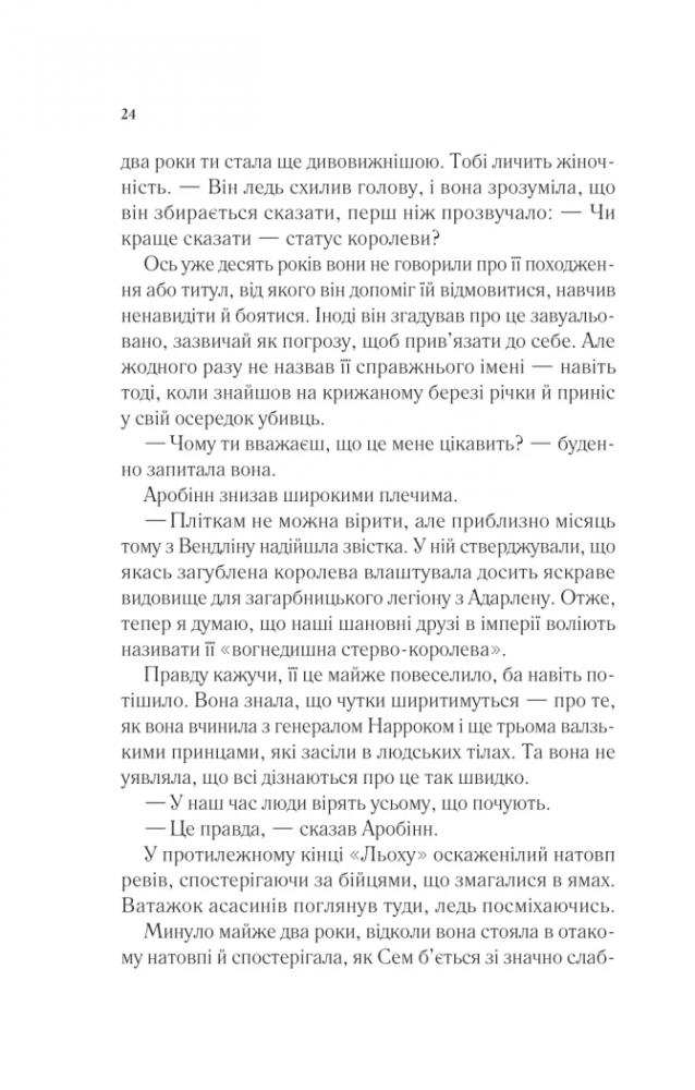 Коли в Селени Сардотін забрали всіх, кого вона любила, їй залишилося єдине: вирушити назад у загарбану злом імперію та помститися тіням свого минулого — заради рідних людей і втраченої домівки. Нарешті прийняла себе як є — вона Аеліна Галатінія, королева Террасену. І досі здатна посісти свій трон, якщо не здасться без бою. Як на лихо, на цьому тяжкому шляху одне за одним постають добре знайомі та нові обличчя, тож їй ще належить розбиратися, хто з них ворог, а хто вартує довіри. Але попри все вона боротиметься: за кузена — воїна, що ладен за неї померти, і за друга — юнака, якого полонила сила пітьми. Вона боротиметься за рідний народ, пригнічений жорстоким королем, адже ці люди сподіваються на тріумфальне повернення своєї втраченої королеви.