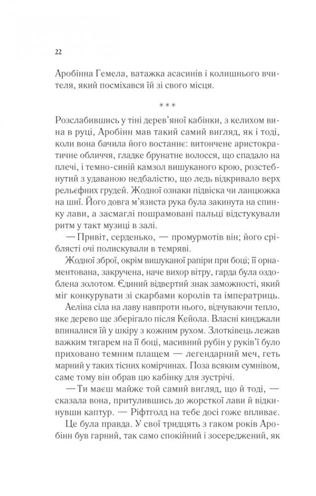 Жорстокі й криваві битви, протистояння тиранії, політичні маніпуляції та дружні зради, пристрасть і романтика, що вирує між персонажами — це все, що зачаровує публіку в книжках Сари Маас. А тепер можна прочитати один з її найпопулярніших творів «Королева тіней» українською!