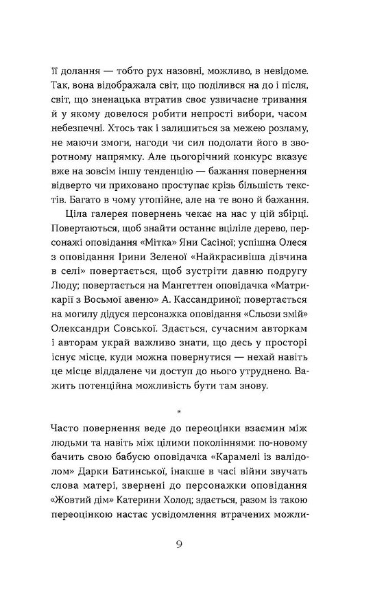 Також у книзі — килим із долею драматичнішою, ніж у деяких людей, харизматична курка Ребека, навіть інопланетна історія кохання на тлі апокаліпсису цілої планети. Кожний текст — це нова грань життєвих пошуків, втрат, страхів і надій.
