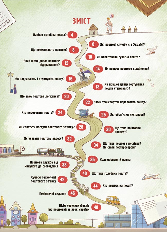 Які сучасні технології допомагають доставляти пошту швидше? Ця книга не лише навчить користуватися поштою, але й розповість про незвичні способи доставки: поштових голубів, кораблі, потяги та навіть роботів! Цікаві факти, веселі ілюстрації й прості пояснення зроблять читання приємним і пізнавальним.