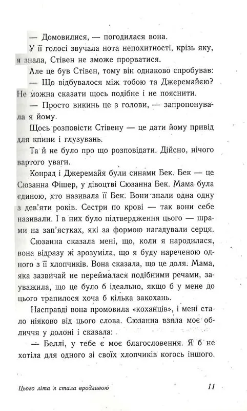 Усі свої п'ятнадцять років Беллі була милою, скромною, непомітною дівчинкою. Вона завжди перебувала в тіні свого старшого брата та найкращої подруги. Для близьких друзів Джеремайї та Конрада, синів маминої подруги, Беллі також залишалася молодшою сестричкою, якої вони ніколи не мали. Але цього літа все змінилось.