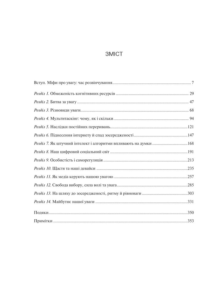 Авторка — докторка філософії, професорка інформатики Каліфорнійського університету — досліджує, як цифрова епоха трансформує нашу поведінку, викликає фрагментацію уваги та формує звички постійного самопереривання. Згідно з її дослідженнями, людина перемикає увагу щодня у 20 сферах діяльності, а кожні 10,5 хвилин втрачає зосередженість. Відновлення концентрації на перерваному завданні займає приблизно 25 хвилин.