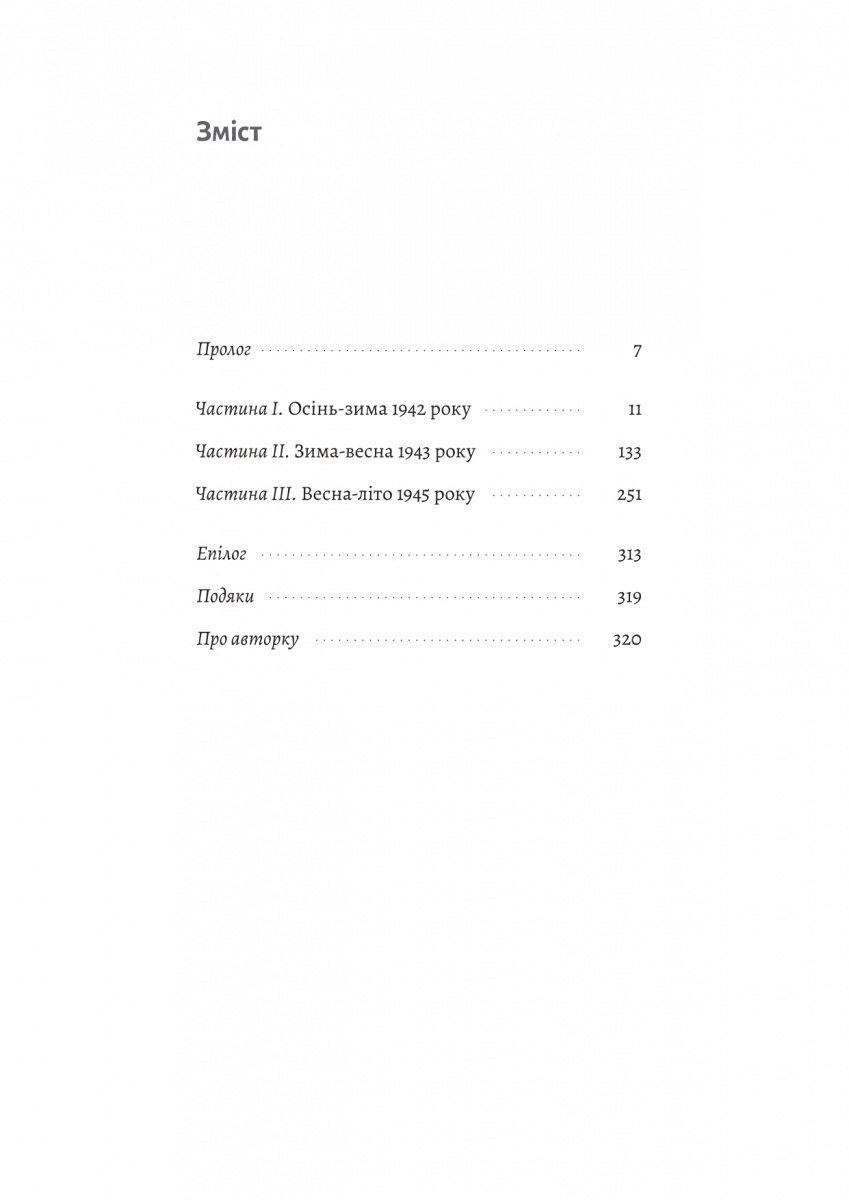 На фоні руйнувань, тривоги та страху розквітає кохання. Але воєнна реальність нещадна: трагедія під час ще одного авіанальоту різко змінює життя героїні. Попри все, книга пронизана надією й вірою в те, що любов здатна подолати будь-яку темряву.