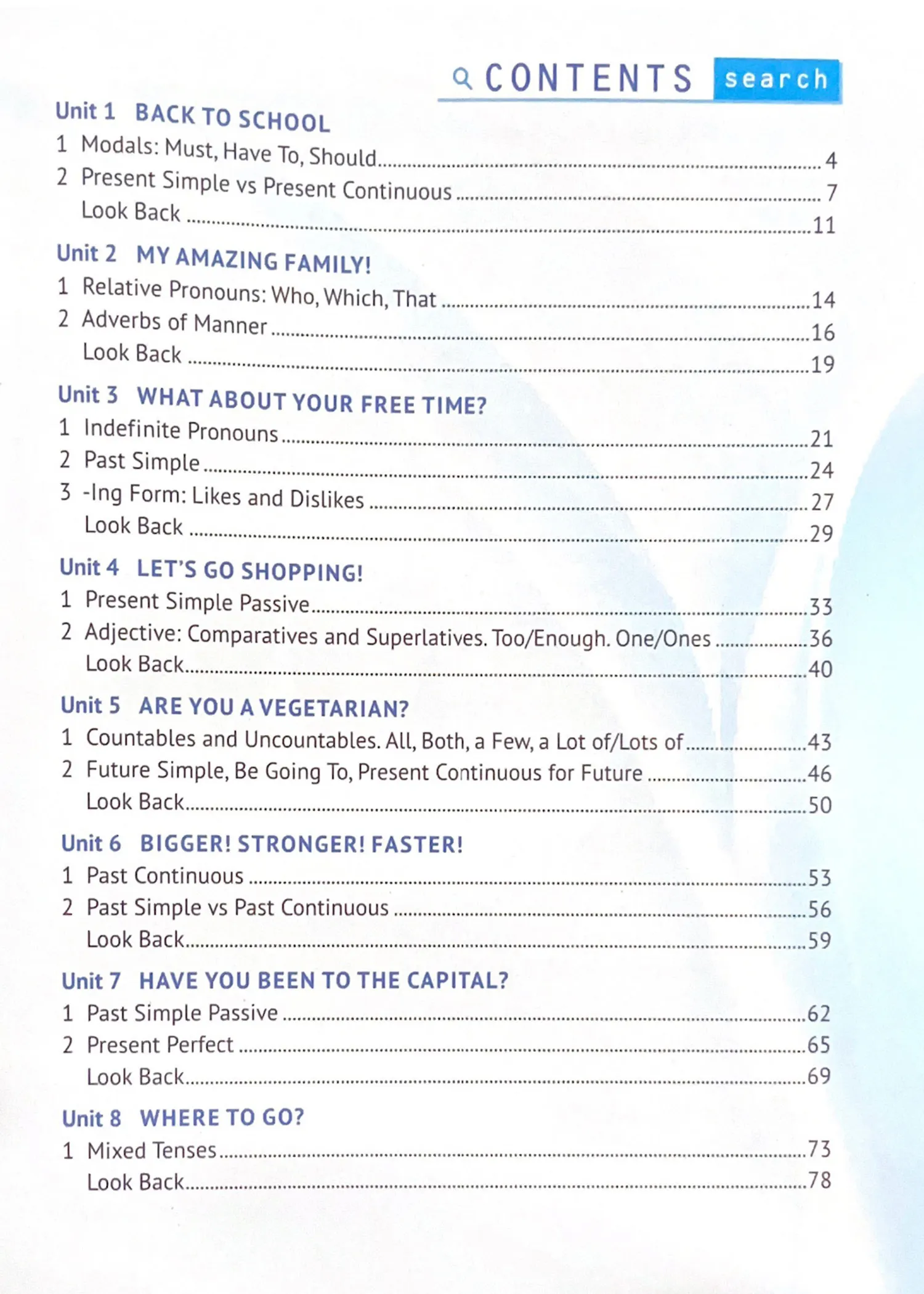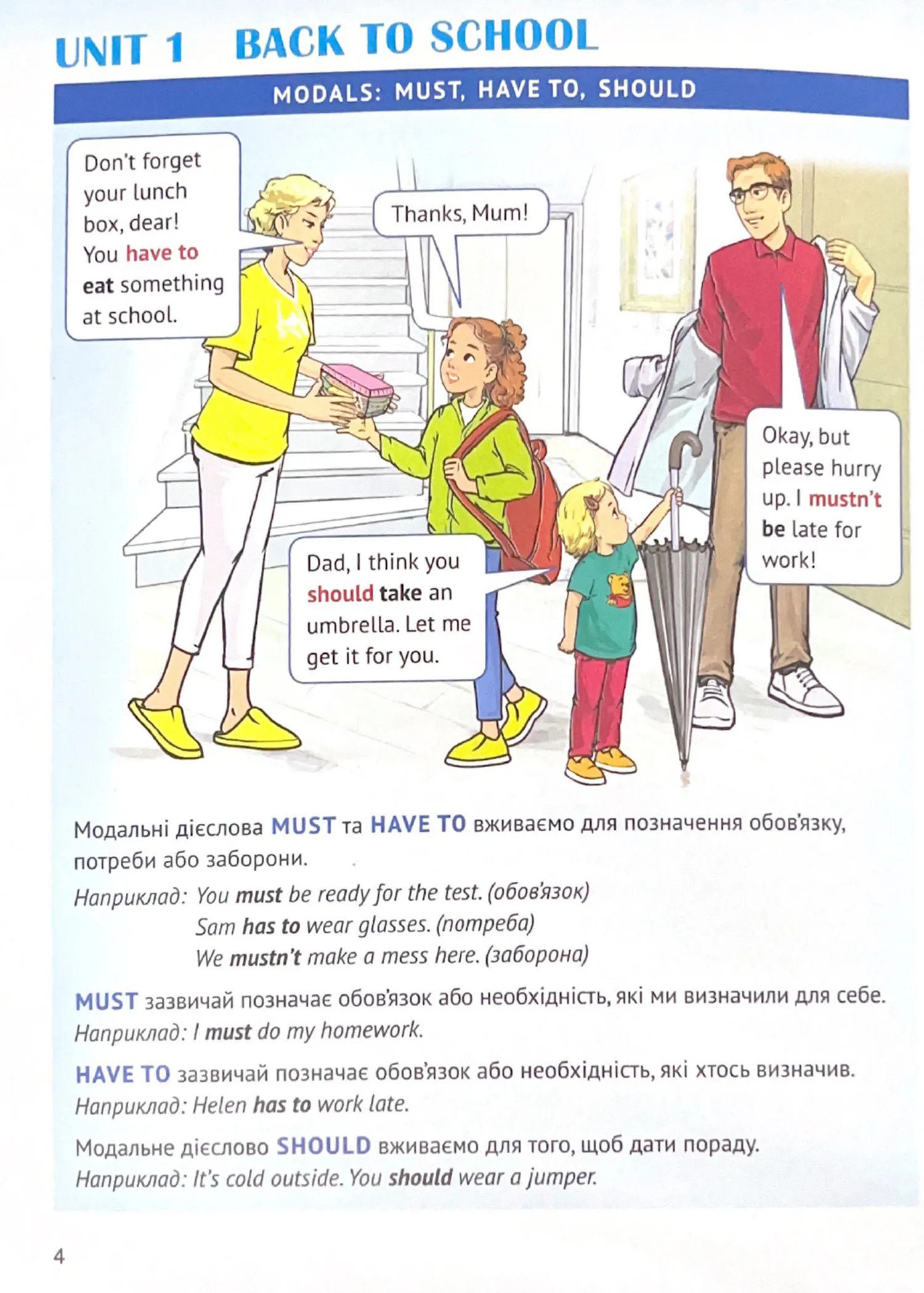 Розуміння граматичних явищ відбувається через ілюстровану презентацію комунікативної ситуації, правила, викладені українською мовою, пояснення про формоутворення та зразки. У посібнику чимало вправ для кращого засвоєння граматики та закріплення у мовленнєвих завданнях.
