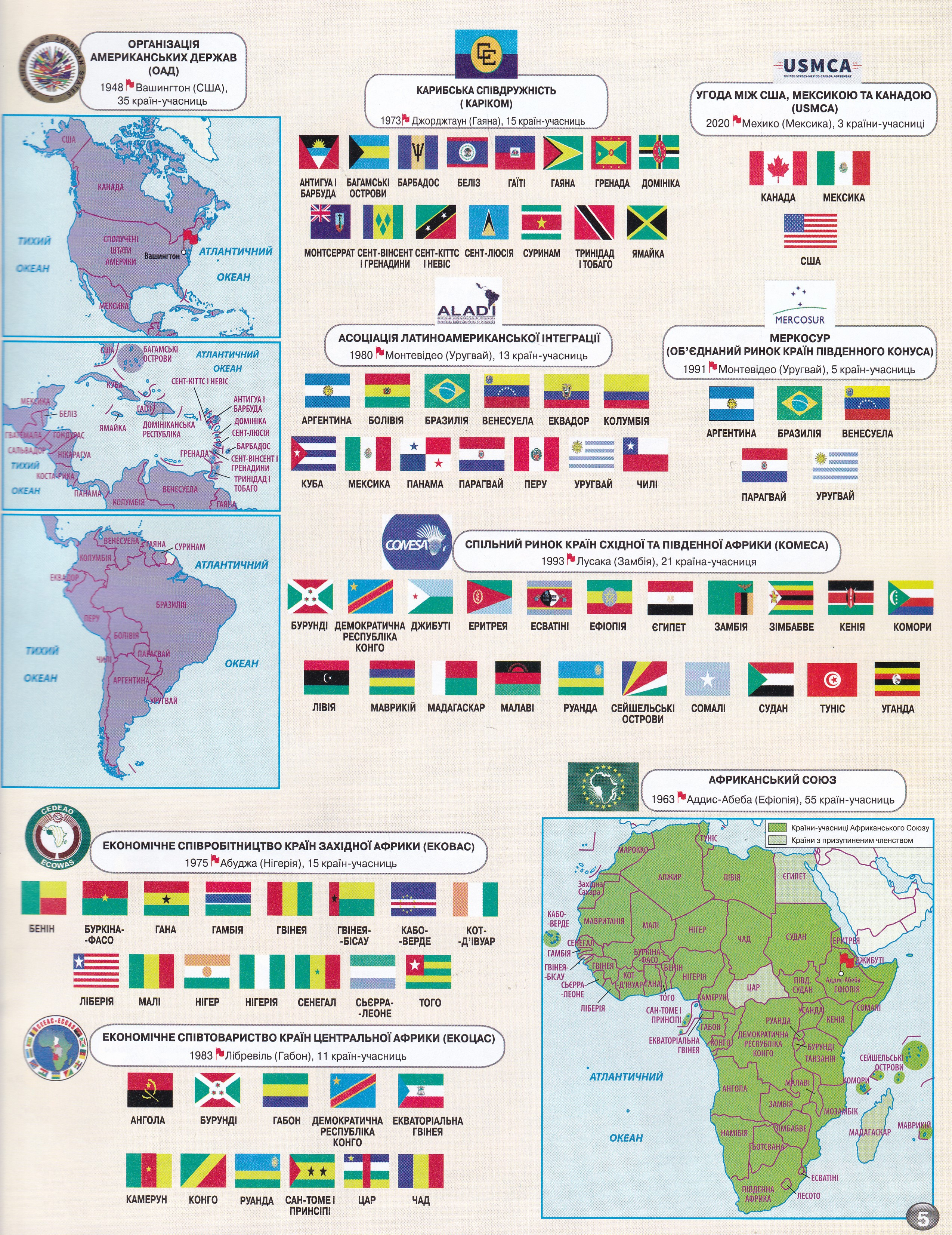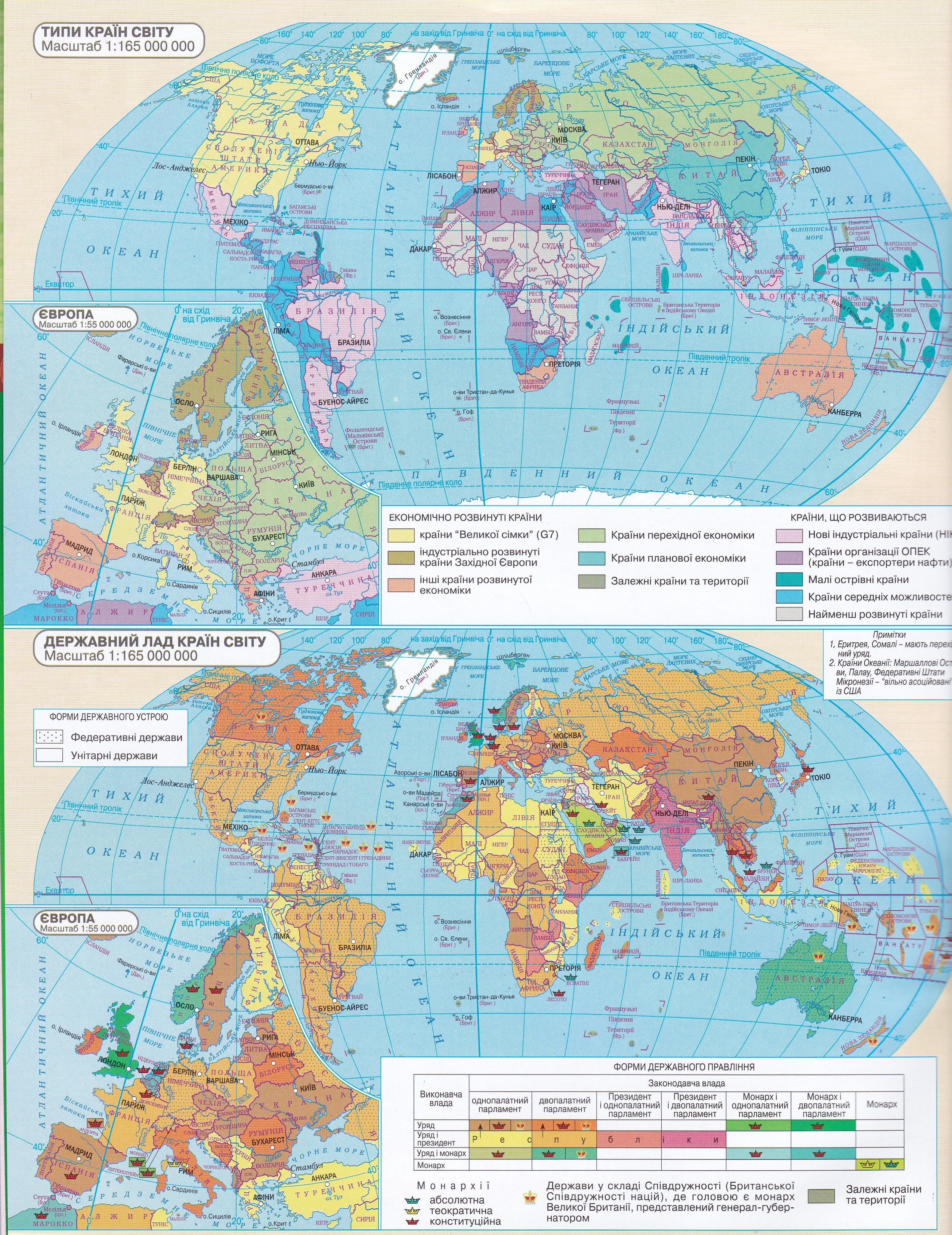 - Економічні карти регіону в цілому та карти окремих країн регіону.