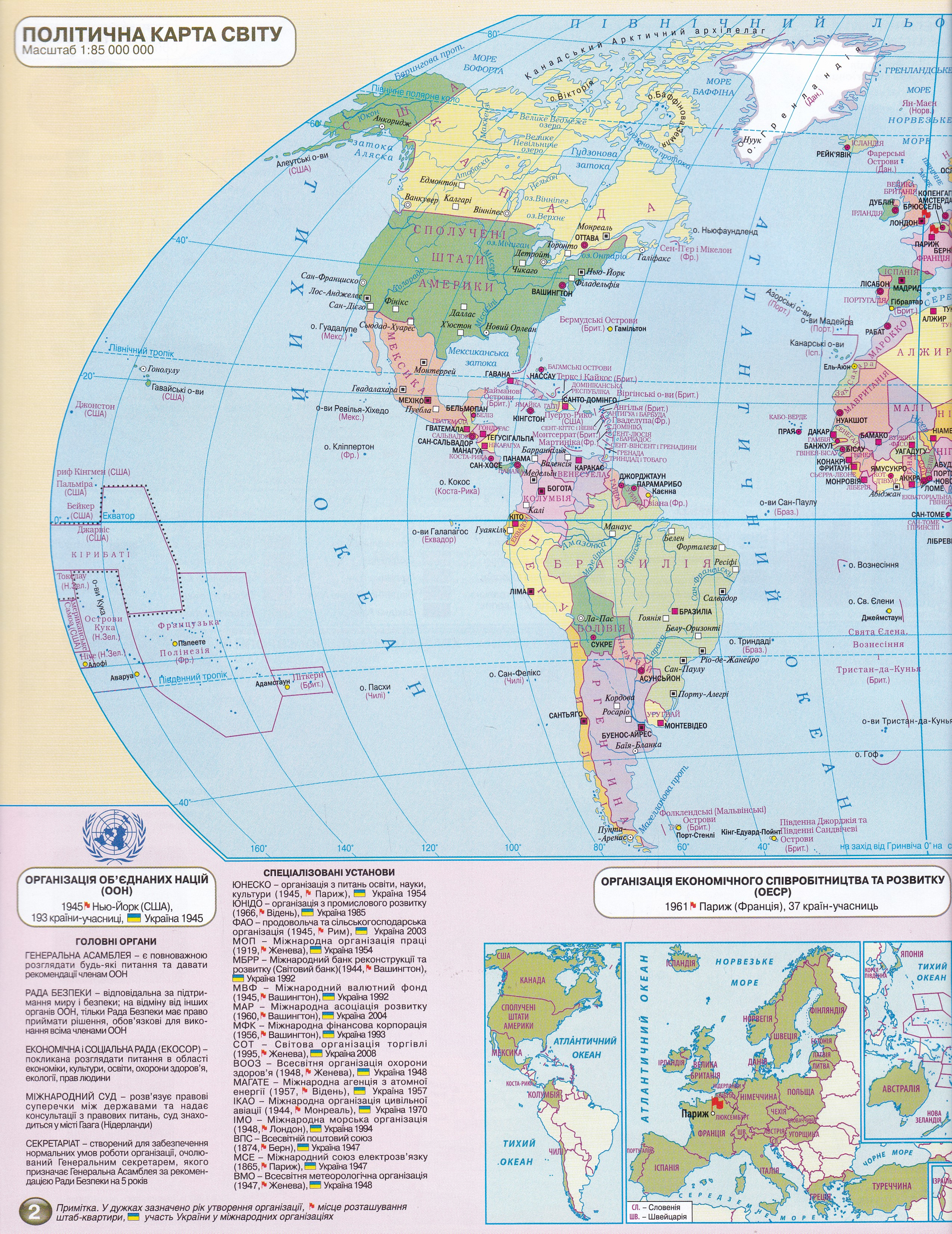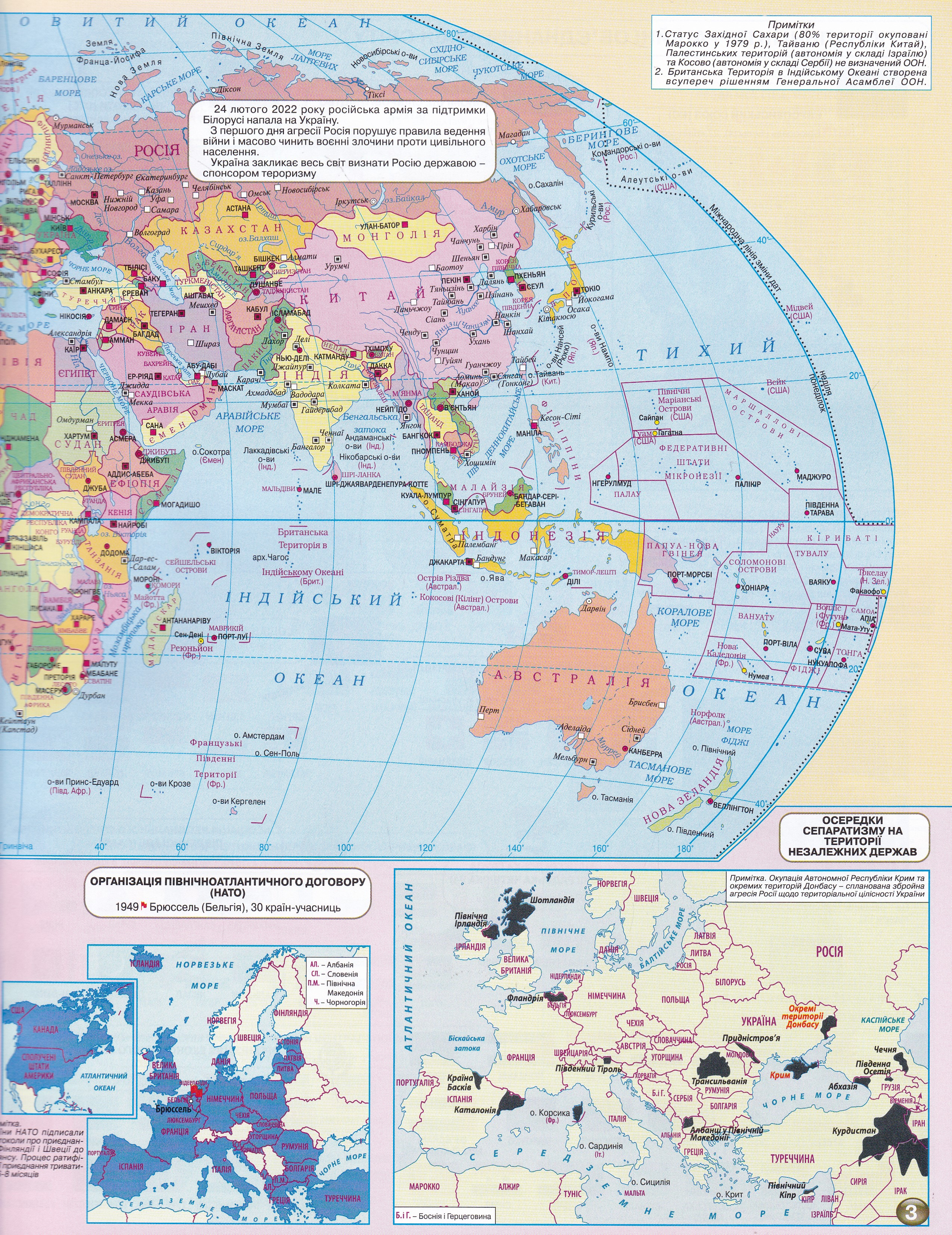 В розділі «Україна» приділена увага зокрема темі міжнародних зв’язків України.