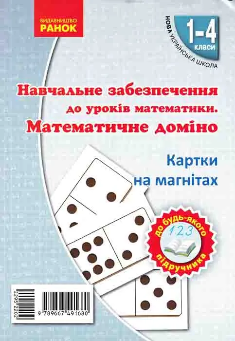 НУШ Навчальне забезпечення до уроків математики. Математичне домiно. Картки на магнiтах