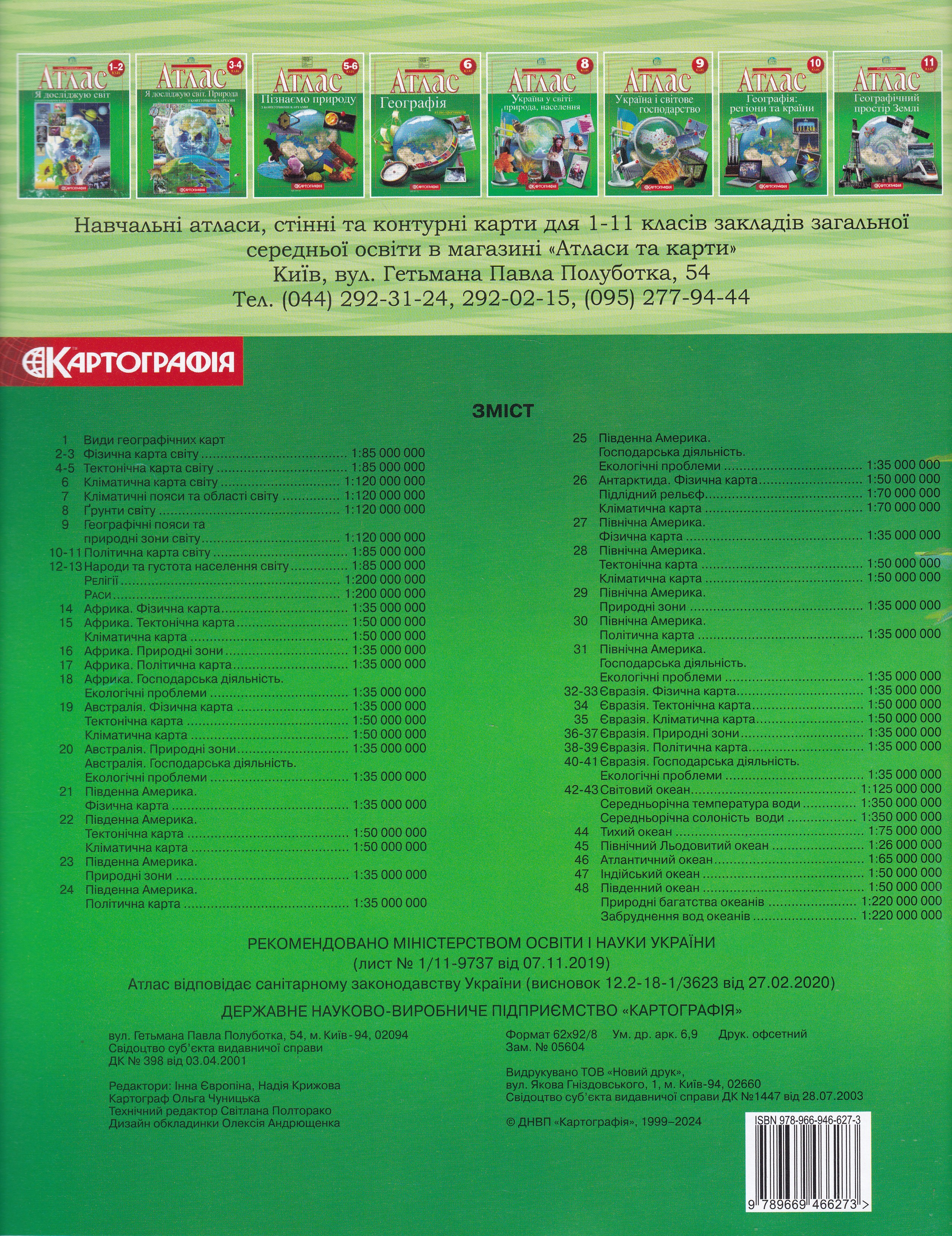 Даний атлас буде гарним помічником як для вчителя, так і для учнів 7 класу, для комплексного вивчення материків і океанів.