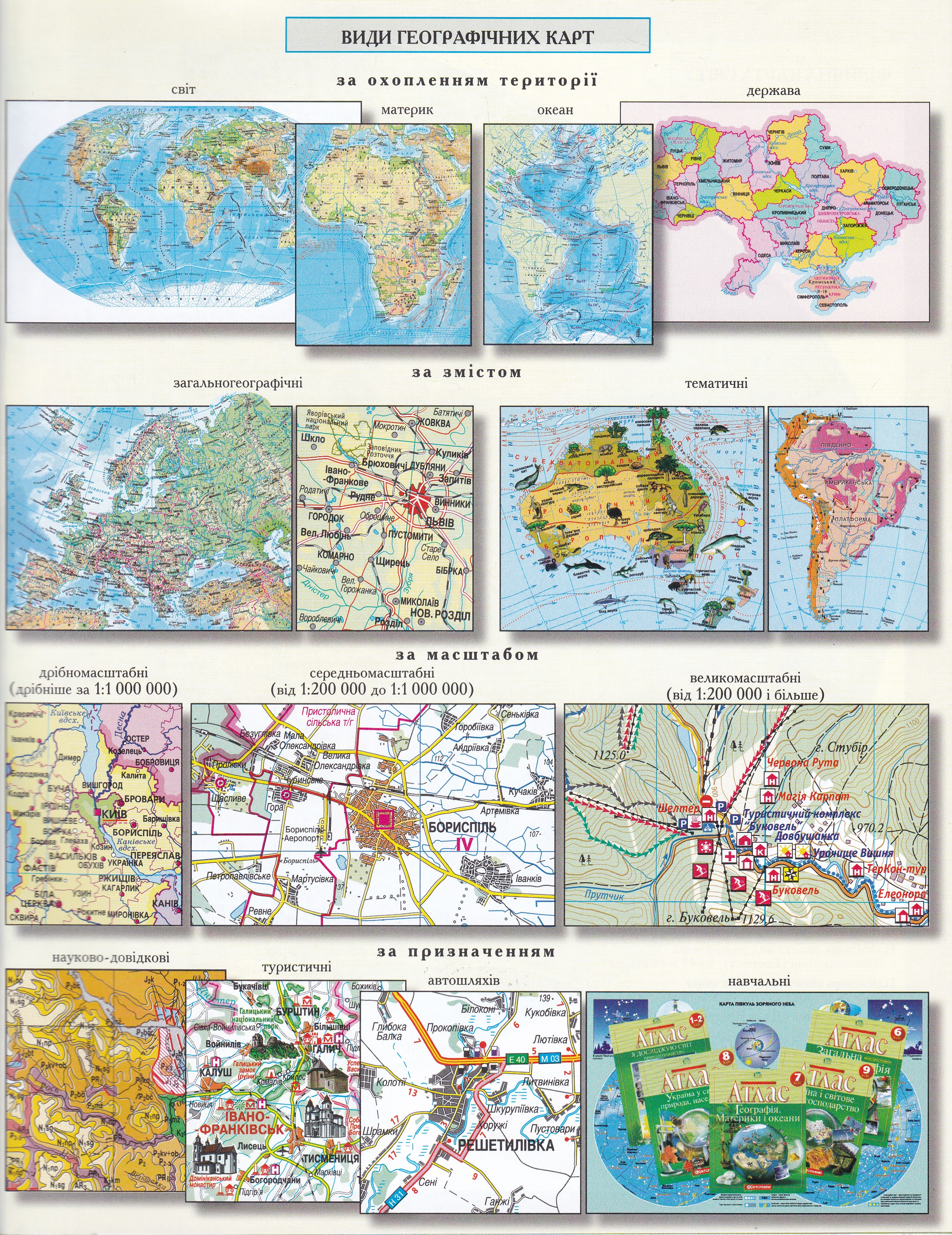 Для повноти та наочності основні базові карти материків створені в єдиному масштабі 1 : 35 000 000, що дозволяє усвідомлювати розміри материків, порівнювати і аналізувати різноманітну географічну інформацію: цілісність природи материків і океанів, їх різноманітність та умови життя населення.