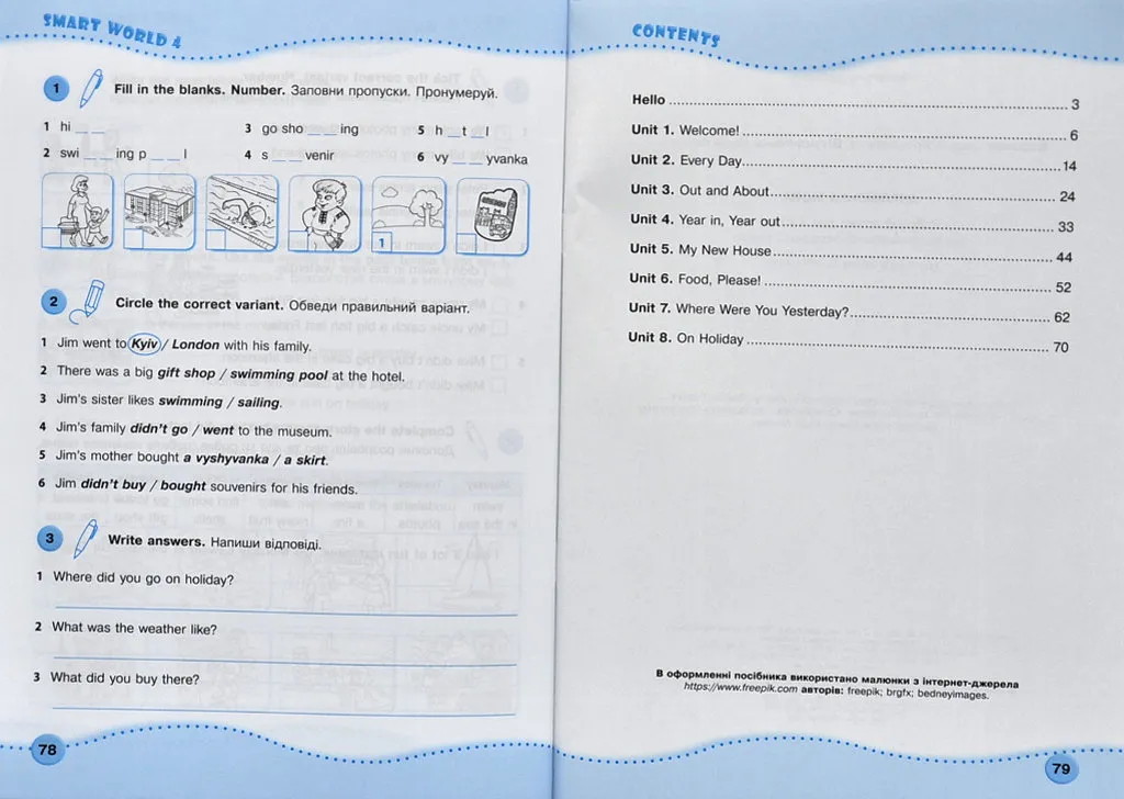 Різноманітність завдань, уміщених у зошиті, сприятиме збагаченню словникового запасу третьокласників, закріпленню та систематизації набутих знань, розвитку уяви, уваги, мислення. Для учнів 3 класу та вчителів англійської мови.