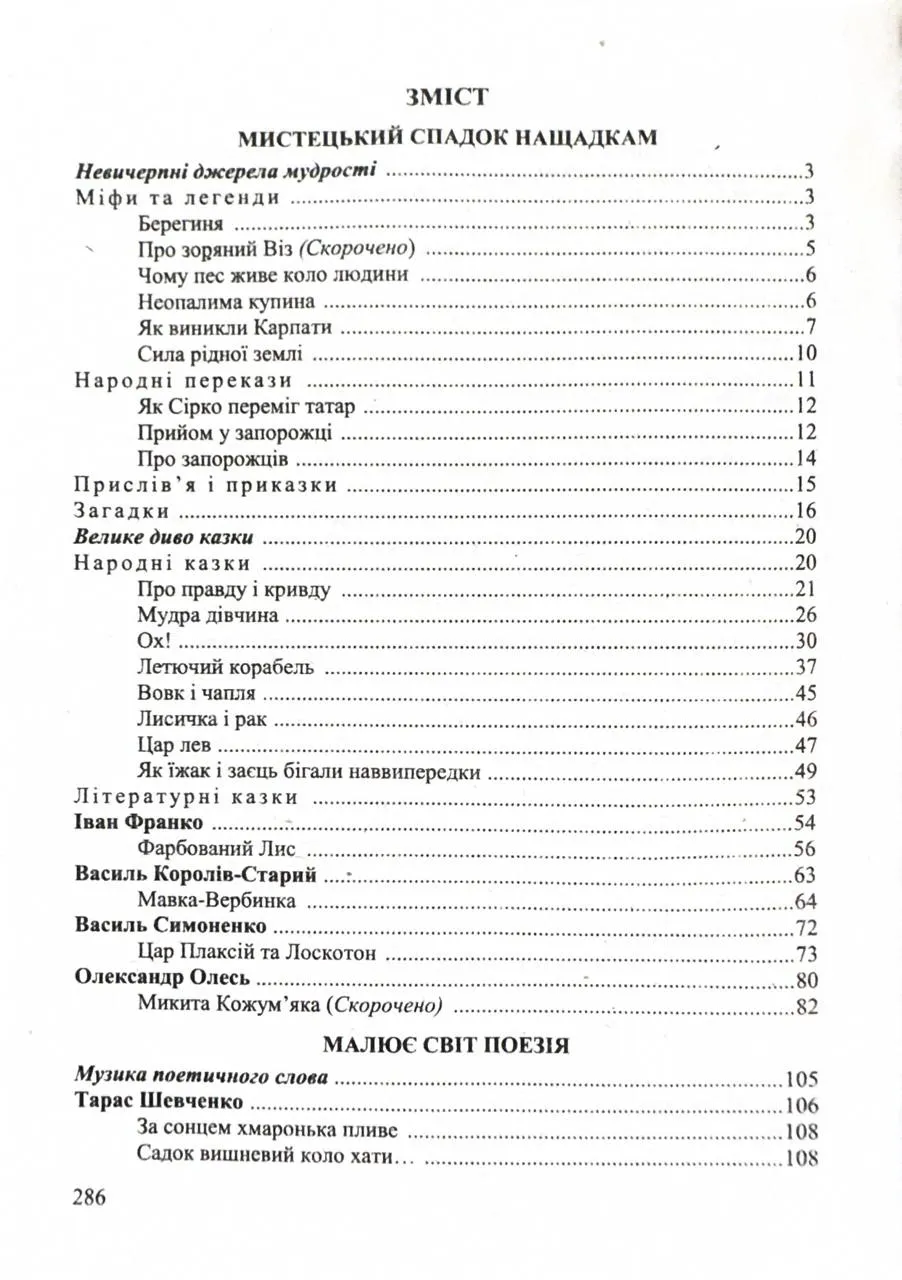 У хрестоматії подано всі тексти (у повному обсязі чи скорочено) літературних творів, передбачених чинною модельною навчальною програмою «Українська література. 5–6 класи» для закладів загальної середньої освіти (автори: Архипова В. П., Січкар С. І., Шило С. Б.), основний літературознавчий матеріал та питання і завдання для самоконтролю до кожної теми.