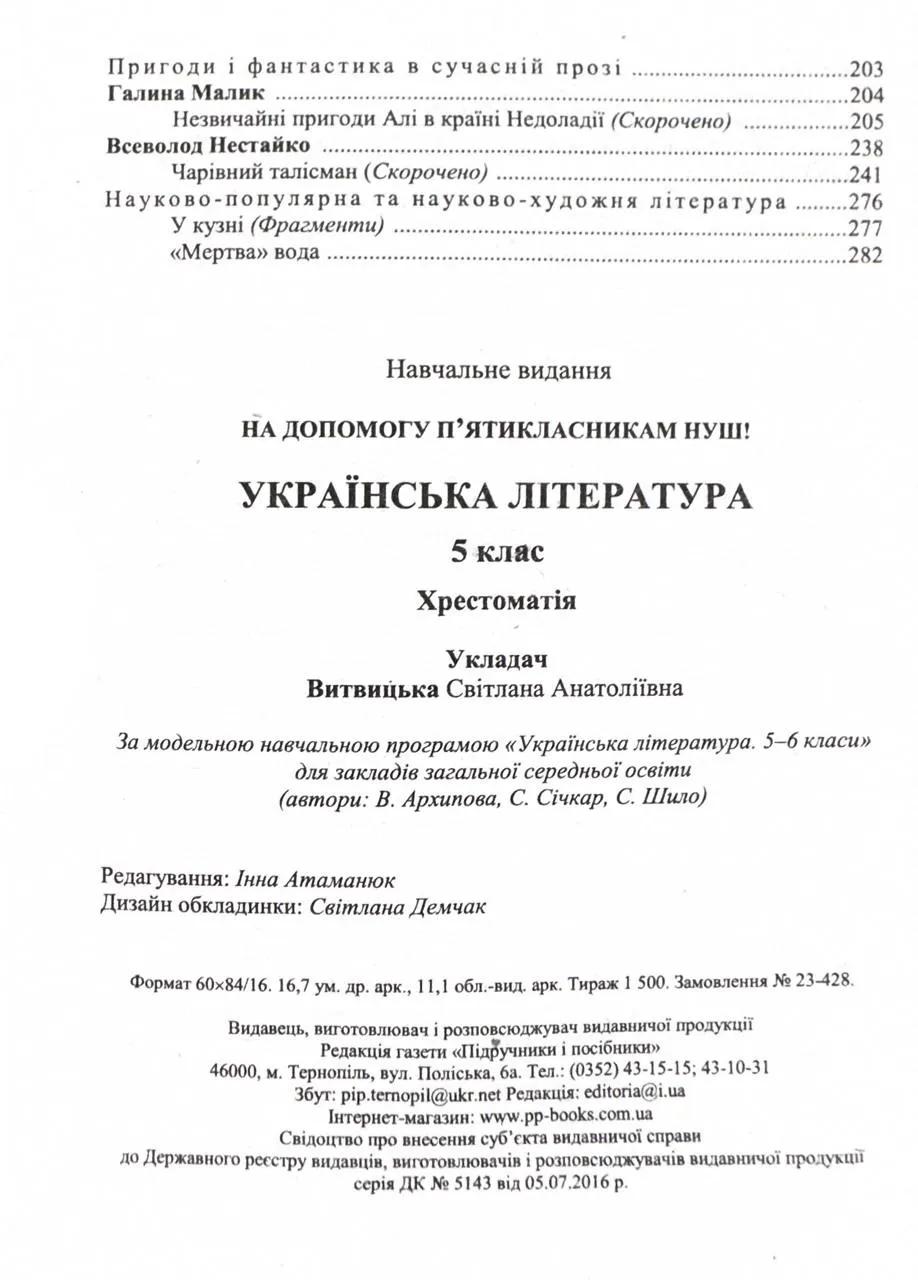 Українська література. 5 клас. Хрестоматія (НУШ)