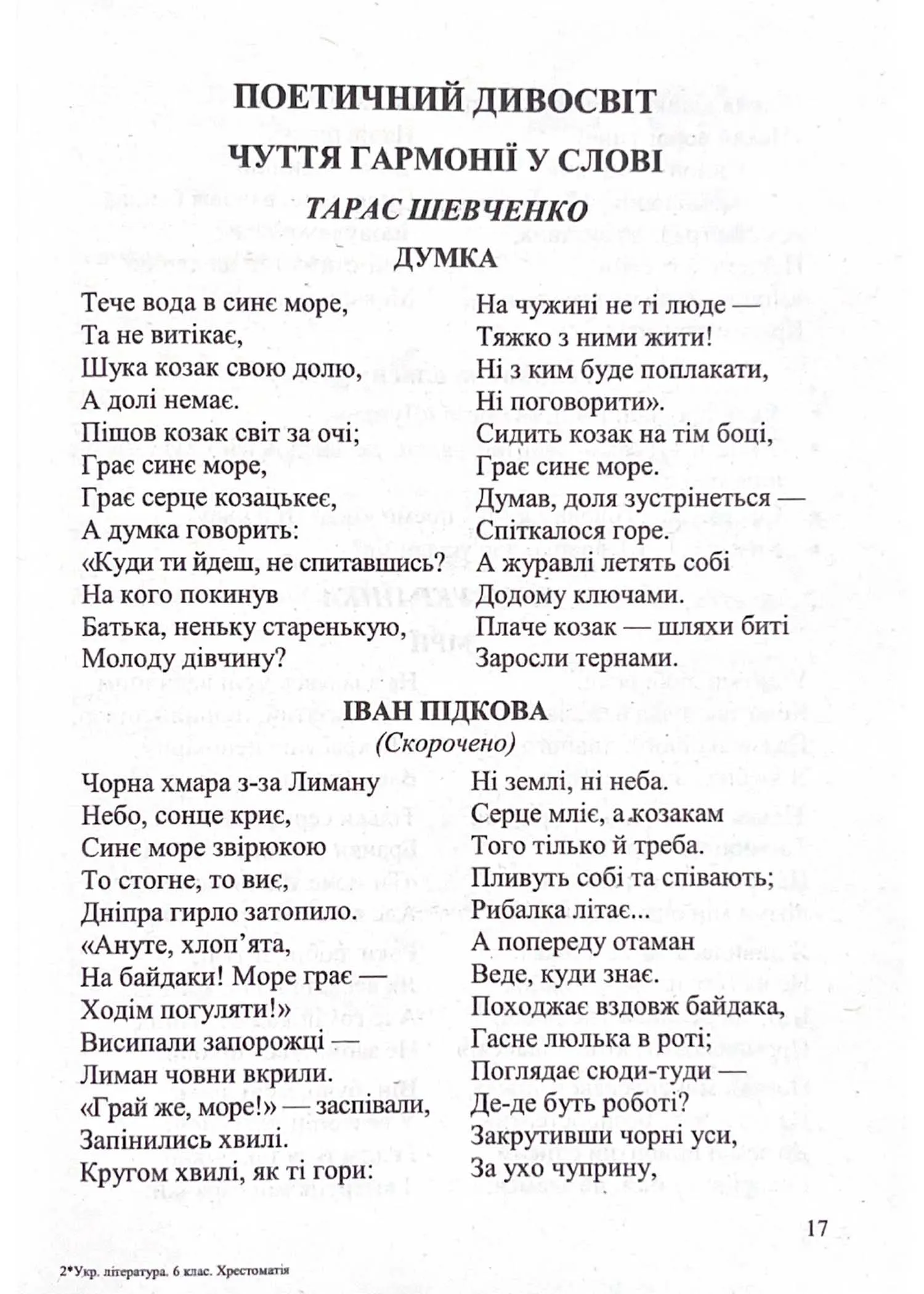 У хрестоматії подано всі тексти (у повному обсязі чи скорочено) літературних творів, передбачених чинною модельною навчальноюпрограмою «Українська література. 5–6 класи» для закладів загальної середньої освіти (автори: В. Архипова, С. Січкар, С. Шило) тапитання і завдання для самоконтролю до кожної теми.