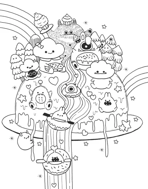 Ці монстрики страх які кумедні й милі. Вони подорожують на летючих єдинорогах, катаються на місяці, живуть у пряникових будиночках і дуже люблять бешкетувати. Розважайтесь разом з ними і наповнюйте кольорами химерний світ персонажів відомої художниці Лулу Майо.