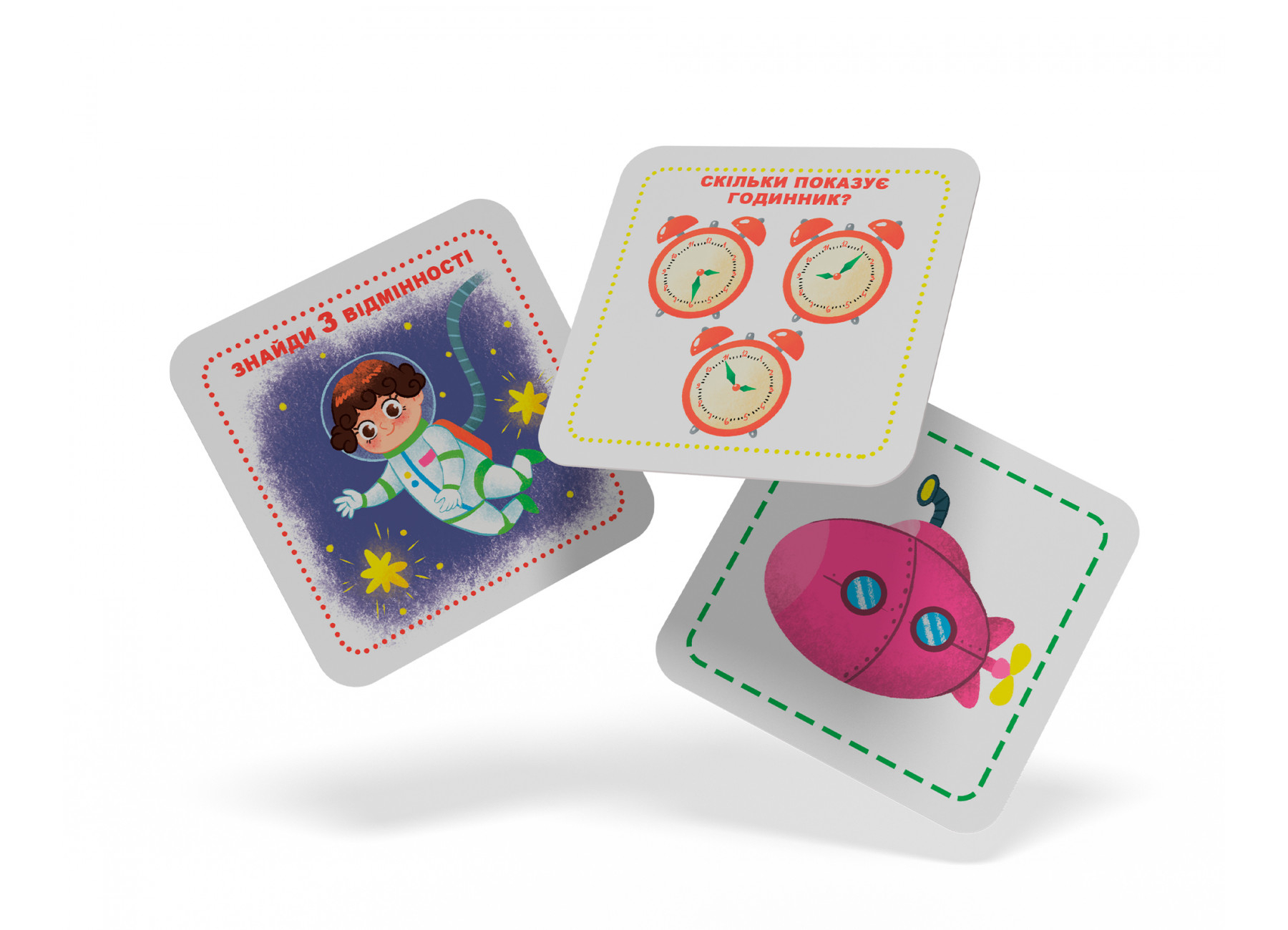 Якщо дитина добре справляється, можна ускладнити завдання: давайте їй менше часу на запам'ятовування, ставте супутні запитання, вигадуйте свої власні ігри. Набір передбачає співпрацю дитини й дорослого.