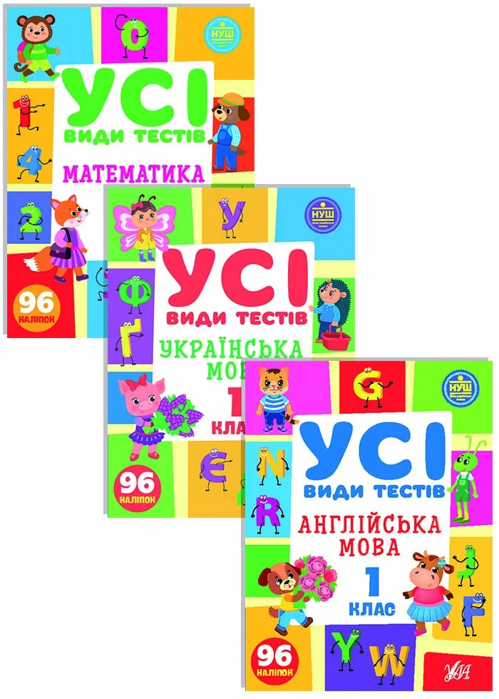 Усі види тестів 1 клас. Комплект із 3 шт: Математика, Українська мова, Англійська мова