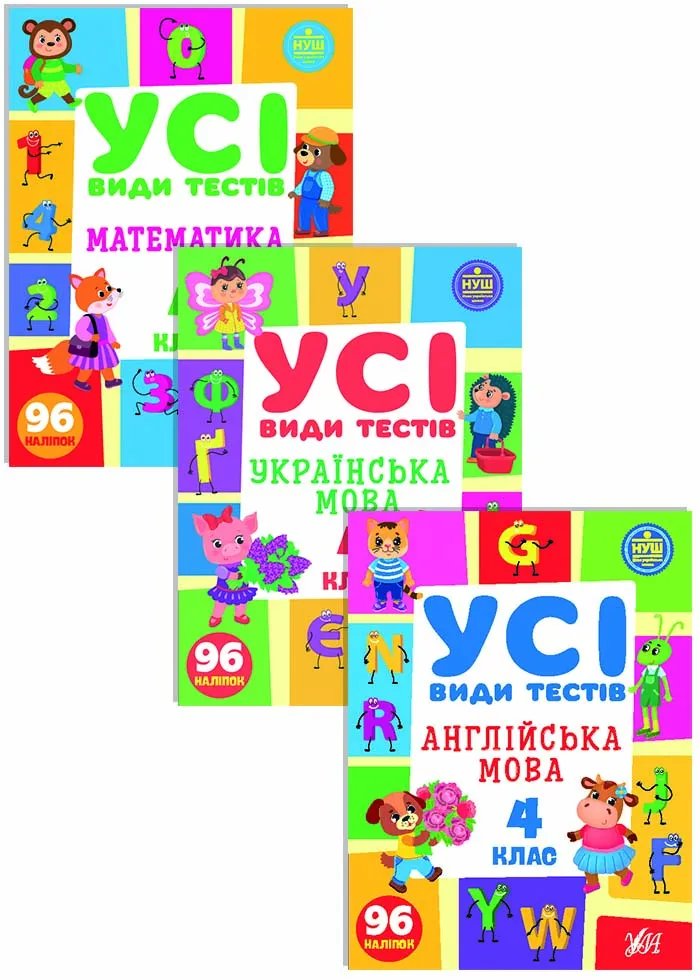 Усі види тестів 4 клас. Комплект із 3 шт: Математика, Українська мова, Англійська мова