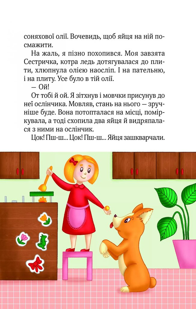 Ваша дитина дуже хоче допомагати вам у домашніх справах, але, здається, весь світ проти неї? Тарілки вислизають із рук, віник мете не туди, нитка відмовляється пролазити у вушко голки?.. Нема біди! Управний песик Клубочок виправить ситуацію. Віднедавна його маленька господиня (чи то пак «сестричка») самотужки порається коло господарства. Утім, без підказок, ненав’язливих порад, ба навіть забавок Клубочка їй не обійтися! Разом вони навчаються дорослості — і навчають інших малюків. Адже кмітливий песик веде щоденника, куди занотовує різноманітні корисності. Гайда читати?