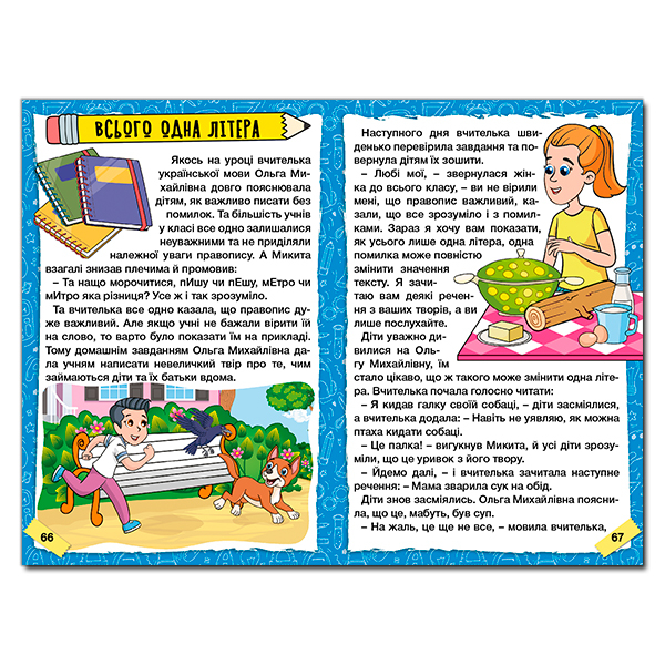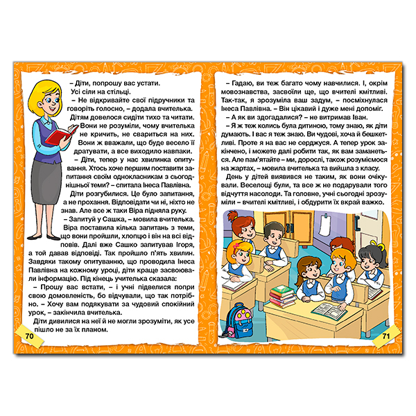 Ця книга прекрасно підійде вашій дитині для самостійного читання, адже вона містить невеличкі цікаві та повчальні оповідання з життя школярів, які неодмінно їй сподобаються. Тексти надруковані великими літерами та мають кольорові ілюстрації. Цю книгу можна взяти з собою в дорогу, на прогулянку і читати разом з друзями!
