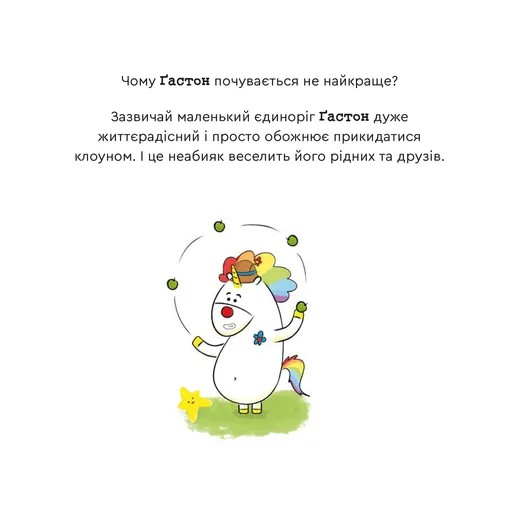 Ґастон — малий єдиноріг, який не такий, як інші. Його веселкова грива змінюється в залежності від його емоцій. Але сьогодні Ґастон відчуває себе збентежено. Він святкує свій день народження і опинився в центрі уваги. Як йому повернути добрий настрій і насолодитися святом? Приєднуйся до Ґастона в його подорожі, щоб дізнатися, як він знову знайде радість і щастя в цей особливий день!