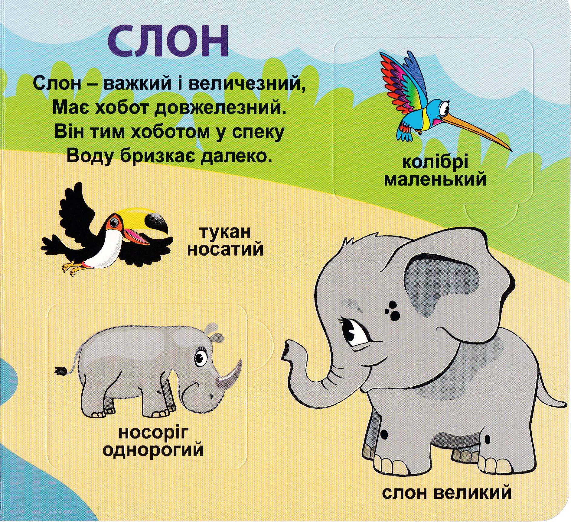 На сторінках цієї книги ваша дитина познайомиться з різноманітними цікавими тваринками та дізнається про їхні особливості. Вона зможе прочитати гарні та короткі віршики про тваринок. Читайте їх разом та вивчайте найцікавіші з них. Доповнюють книжку чудові ілюстрації з віконцями.