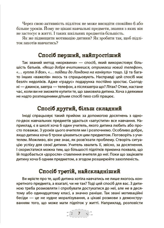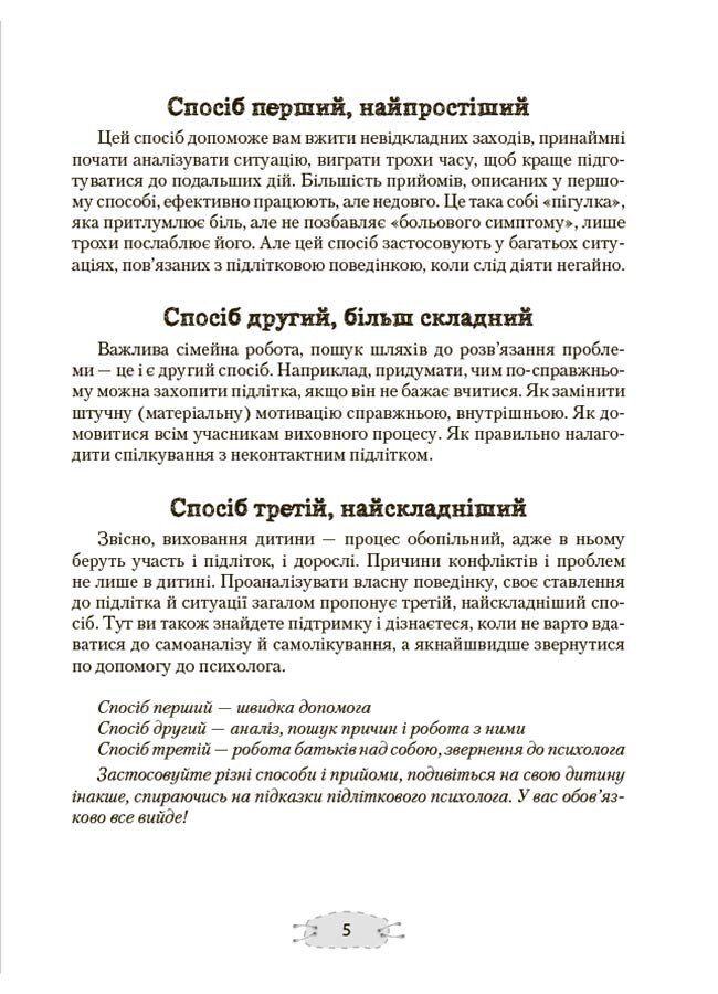 На кожен випадок Гресь А. пропонує три практичні варіанти дії — як точки відліку для вирішення проблеми. Такий підхід допомагає знайти індивідуальний підхід, не втрачаючи контакт із дитиною.