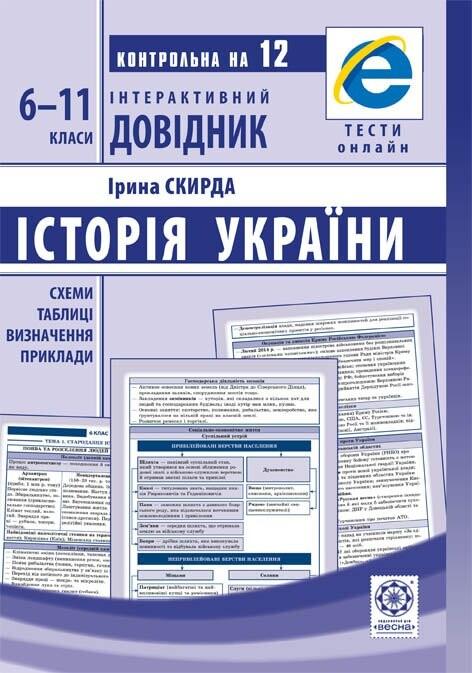 Посібник «Інтерактивний довідник. Історія України. 6—11 класи» допоможе учням систематизувати й по глибити знання з історії України. Усі відомості подано в доступній, стислій і наочній формі — у вигляді зручних таблиць.