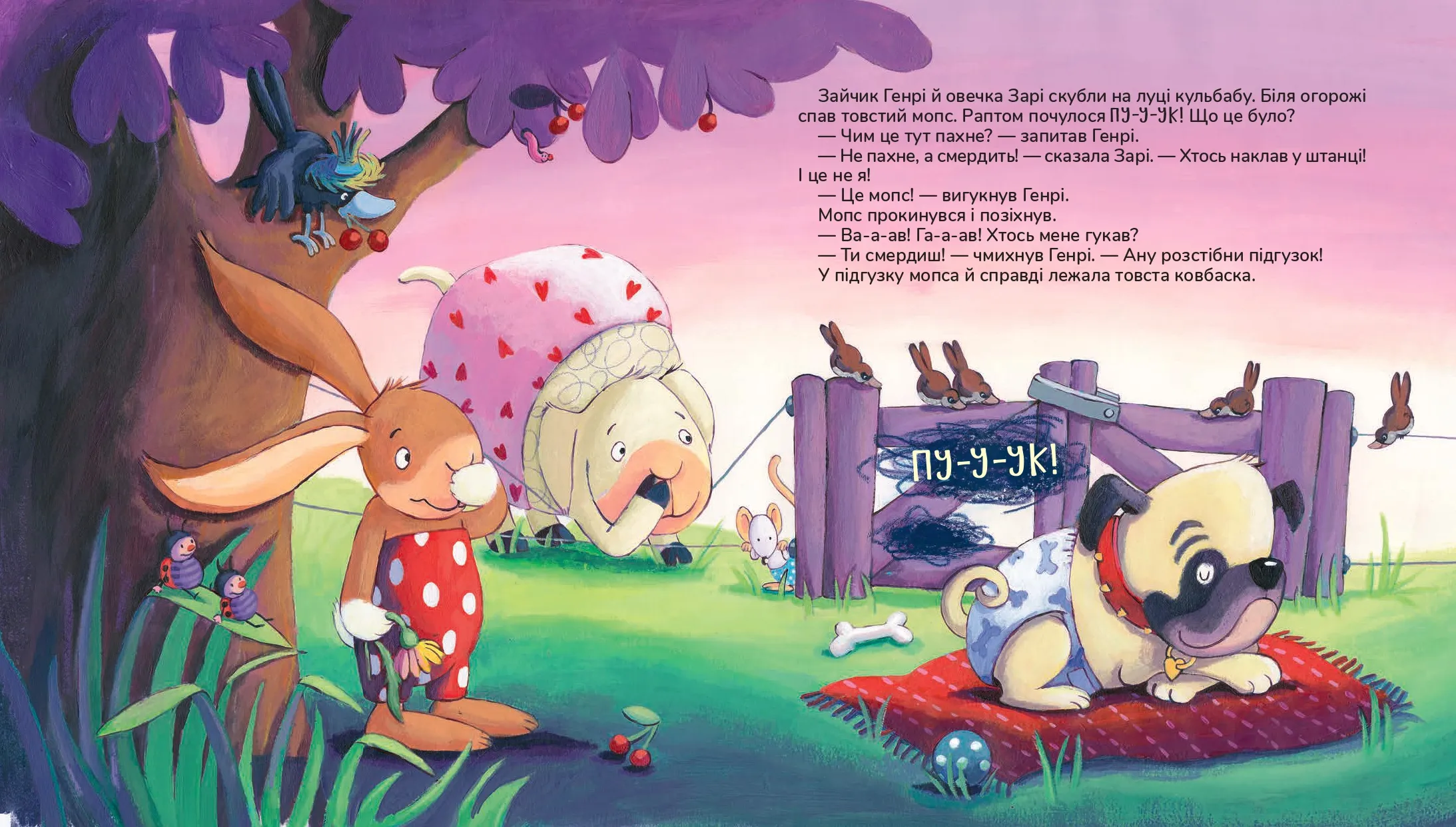 У центрі сюжету — пустотливий мопс, який гордо оголошує: «Оце я круто покакав!». Його виклик приймає овечка Зарі — і починається справжнє змагання між героями. Діти дізнаються, що знаходиться у підгузку у корови, коня, горобця та інших тваринок. І лише один підгузок лишається порожнім. Чому? Відповідь чекає на останній сторінці.