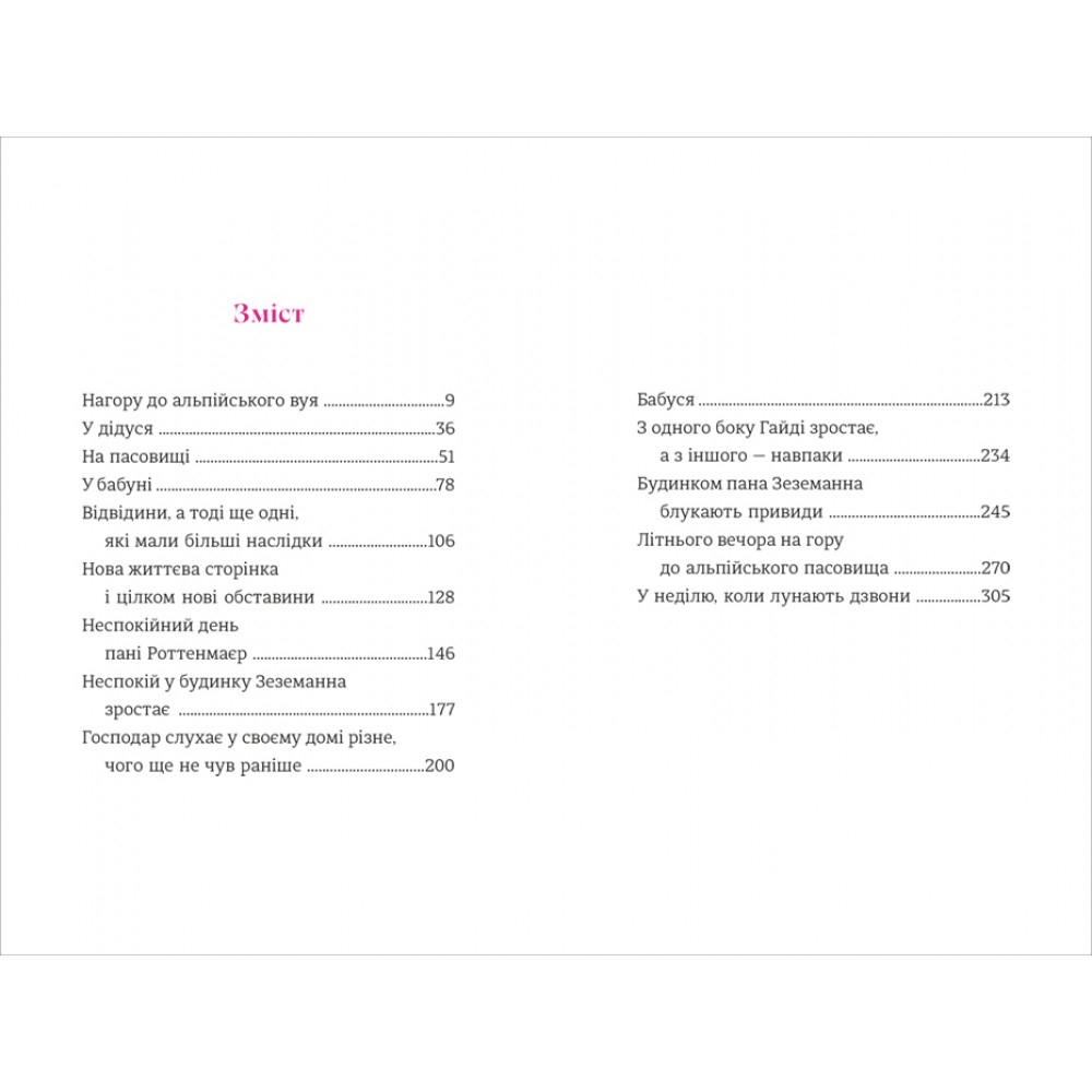 Однак усе змінюється, коли Гайді потрапляє в заможний дім у великому місті Франкфурті. Незважаючи на розкіш та нові можливості, серце дівчинки рветься назад — до гір, до вільного повітря, до рідних місць і людей. Ця книга показує, як важливо не забувати свої корені та слухати голос серця.