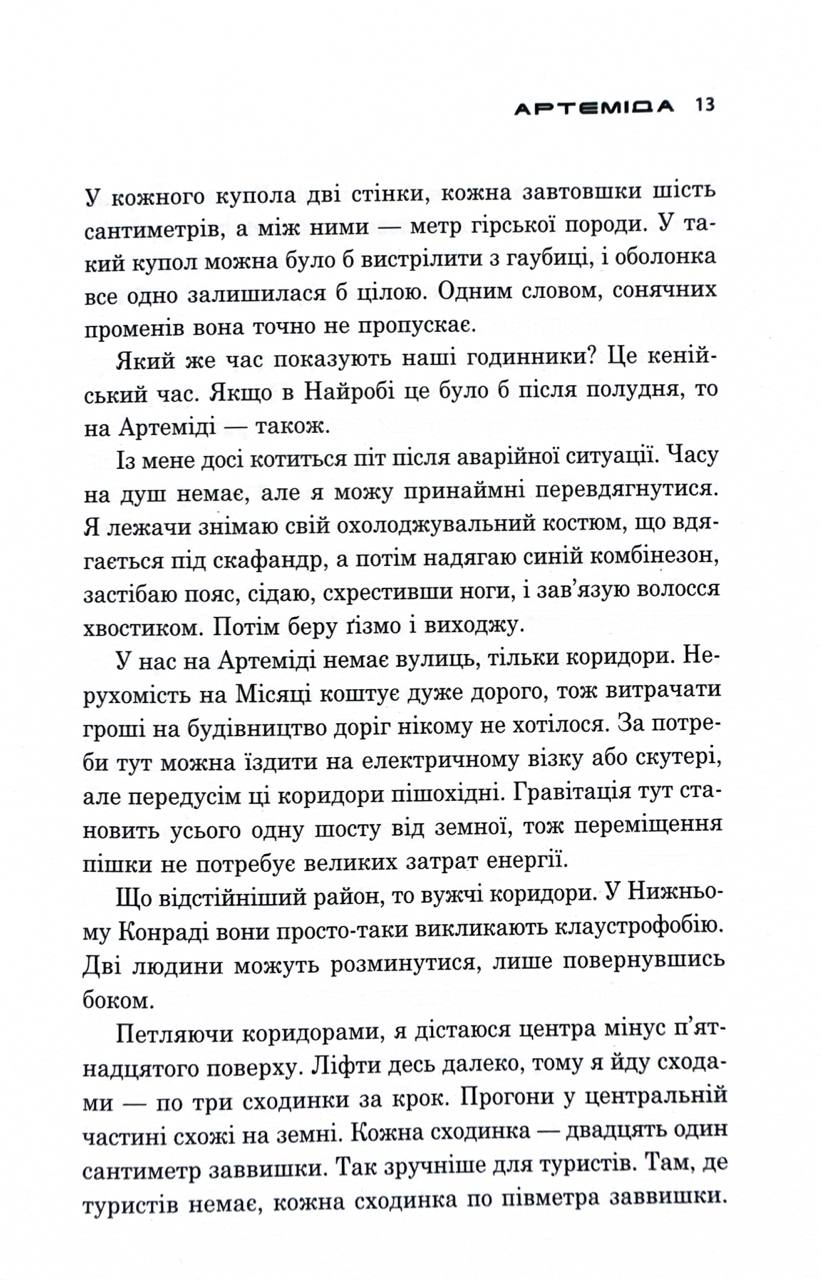 Цей роман неодмінно сподобається фанатам технотрилерів та космічної фантастики. Артеміда ідеально підходить для тих, хто полюбляє небанальні сюжети, гострі виклики долі й харизматичних героїв.
