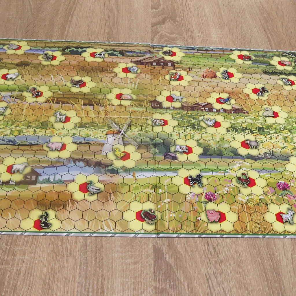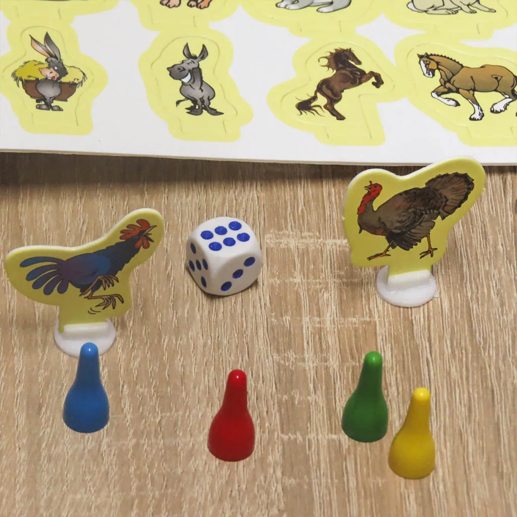Комплектація гри: - Ігрове поле – 1 шт. - Планшет-ферма – 4 шт. - Фігурки домашніх тварин з підставками – 40 шт. - Карточки домашніх тварин – 40 шт. - Карточки диких тварин – 20 шт. - Фішки – 4 шт. - Кубик – 1 шт. - Правила гри.
