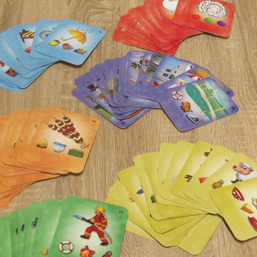 «Дитяча вікторина» – захоплююча розвиваюча гра на асоціації за 6-ма темами для дітей віком від 4 років. Кількість учасників – від 1 до 6. Пропонована гра розвиває у дітей асоціативне мислення, спостережливість та аналітичні здібності, а також концентрацію уваги. Комплектація: - 90 ігрових карточок - Планшет – 1 шт. - Фішка – 1 шт. - Кубик – 1 шт. - Правила гри.