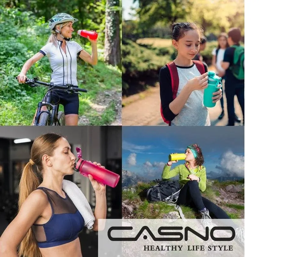 Casno – пляшка для води, виготовлена з якісного Р7 поліефірного пластику, вона не має стороннього запаху, зручна у використанні, не шкідлива для здоров’я. Вона ідеально підходить для піших прогулянок, їзди на велосипеді, для кемпінгу, трекінгу, бігу, йоги та будь-яких інших видів спорту вдома, у тренажерному залі та в офісі.