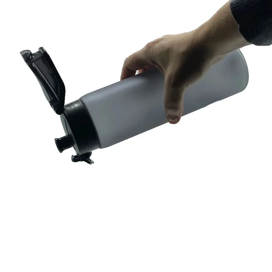 Просто відкрийте пляшку однією рукою, натиснувши на кнопку.Кришка надійно фіксується на 180 градусах, що робить її зручною, особливо в дорозі.Засувка надійно фіксує від раптового відкривання.Щільне прилягання кришки надійно захищає від протікання.Спеціальний не ковзкий, світловідштовхувальний матовий матеріал корпусу soft touch приємний на дотик, стійкий до пошкоджень.Пляшку зручно тримати у руці.Отвір достатньо широкий, щоб використовувати пляшку як шейкер, змішувати напої, кидати всередину кубики льоду.Завдяки широкому горлечку пляшку легко чистити.Зручна ручка для перенесення.