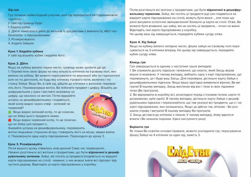 Слідство Місія Заєць. Настільна гра