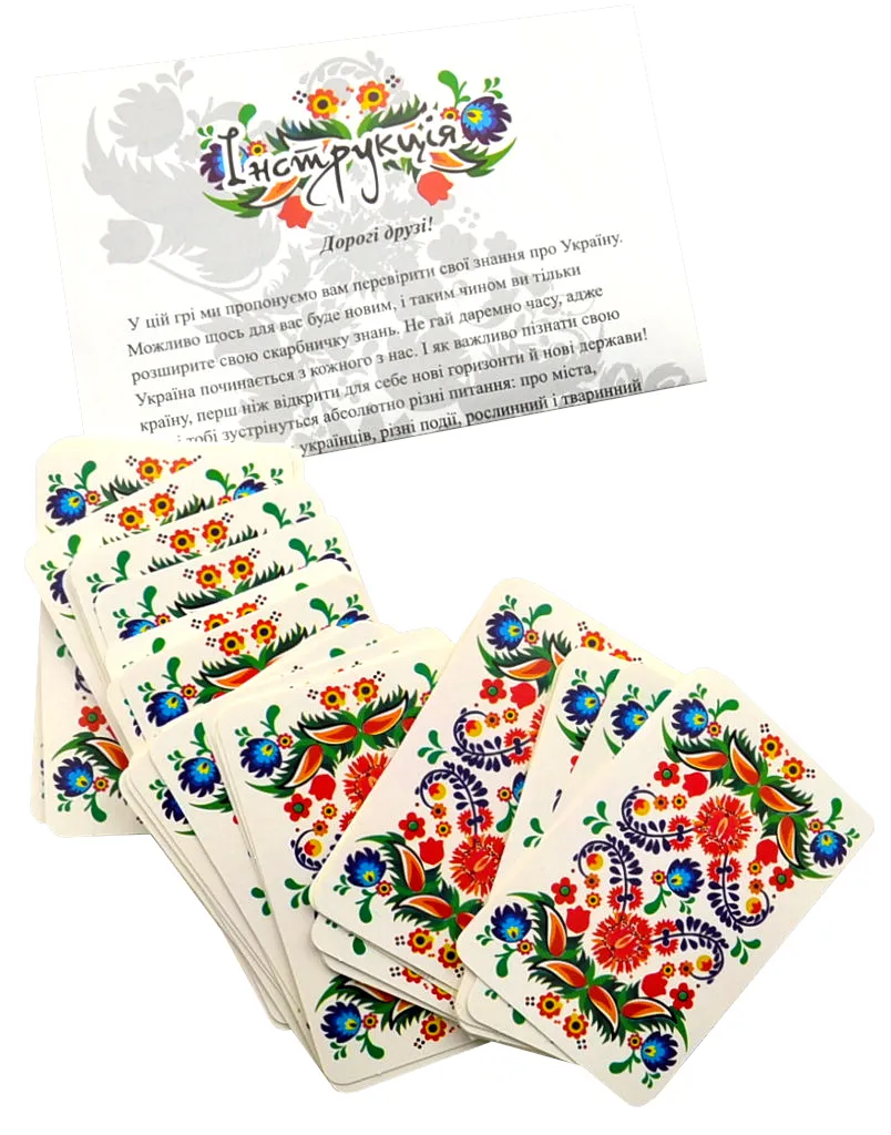 «Be Ukrainian» – настільна вікторина для справжніх знавців українських міст, пам'яток, героїв, визначних подій, тваринного і рослинного світу. Цілих 165 питань і відповідей! Перевірте свої знання або відкрийте для себе щось новеньке про свою країну. Рулетка допоможе визначити, на яке питання картки слід відповідати, а в інструкції знайдете кілька варіантів ігор. Пізнавайте свою країну в сімейному колі та з друзями, змагайтеся один на один або в компанії. Переможе гравець з найбільшою кількістю карток. Рекомендовано для дітей віком старше 12-ти років. Комплектація: 55 карток, рулетка, інструкція.