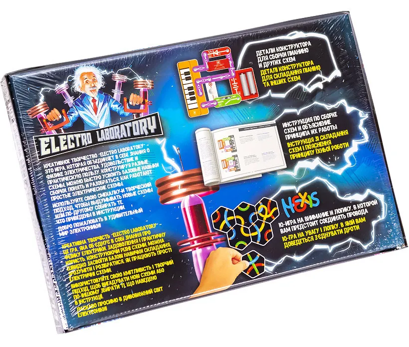 Електронний архітектор Electro Laboratory. Radio+Piano ELab-01-03 поєднує в собі задоволення та практичну користь. Конструюючи різні схеми, можна швидко засвоїти базові навички збирання, розібратися, як працюють прості електричні схеми.У комплекті: деталі для складання піаніно та IQ-гра HEXIS.Вік 6+
