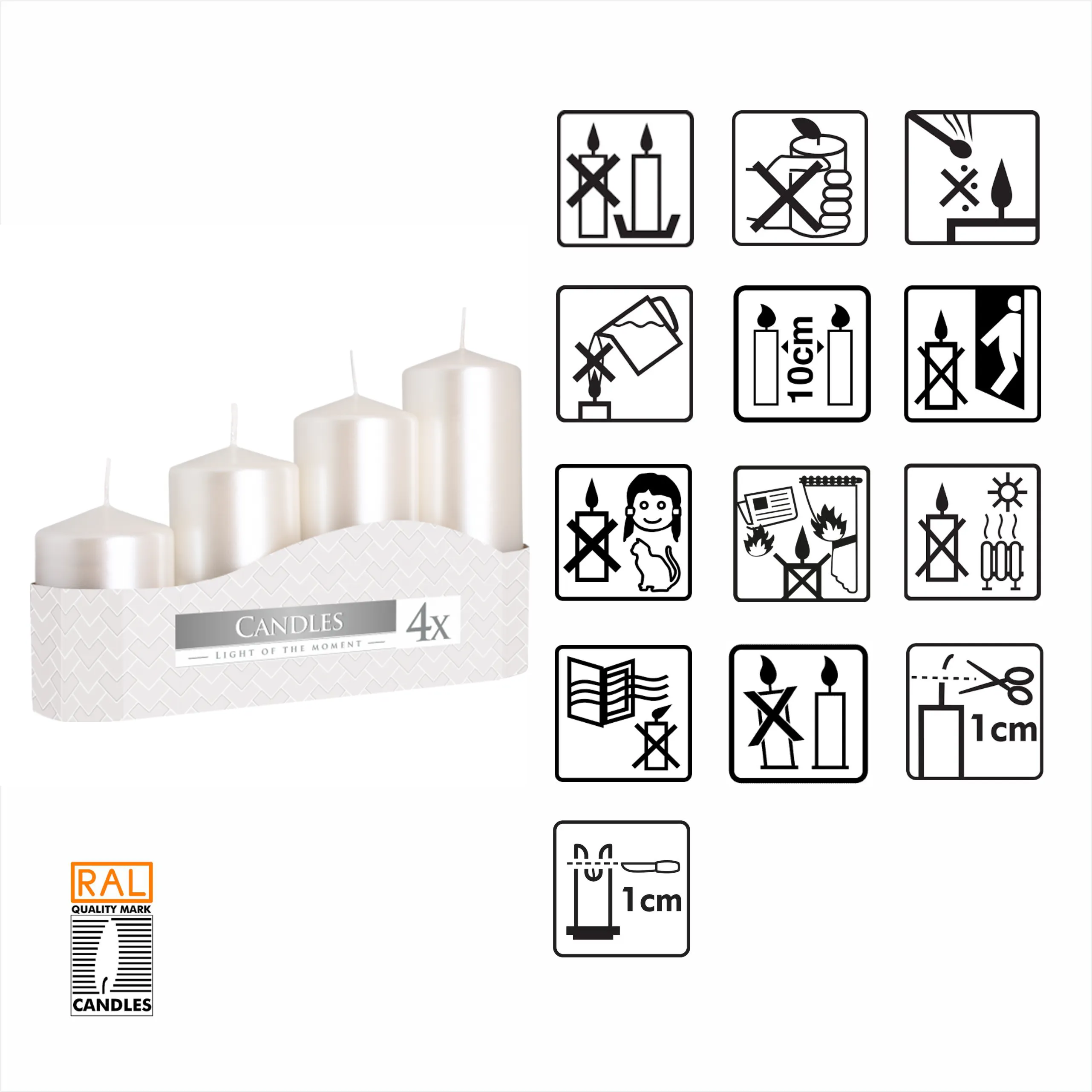 Набір із 4 циліндричних парафінових свічок «Bispol» – неодмінно має стати атрибутом Вашої новорічної оселі. Чотири естетично привабливих свічки різного розміру створять казковий інтер’єр у Вашому домі. Кожен член родини може обрати свою і знайти їй місце на власний смак. Важливо, що ці парафінові свічки вироблені з високоякісного матеріалу, тому не містять токсичних речовин, що виділяються при горінні й абсолютно нешкідливі для здоров'я, вони не стікають і не коптять.
