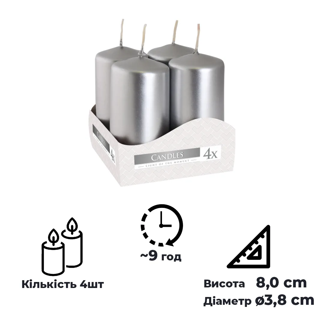 Набір свічок Bispol Aura 4 шт. Срібний металік (sw40/80-271)