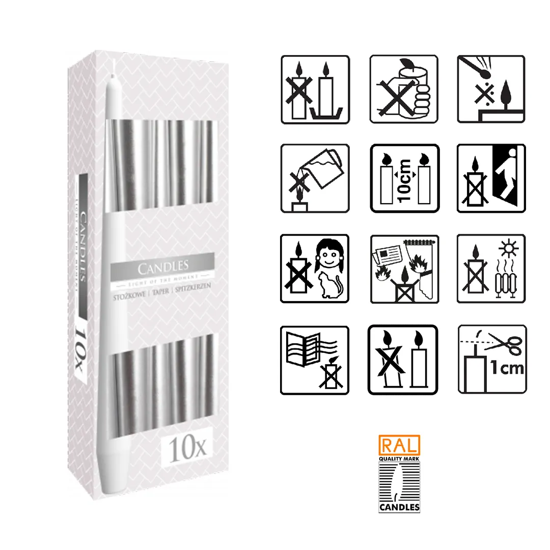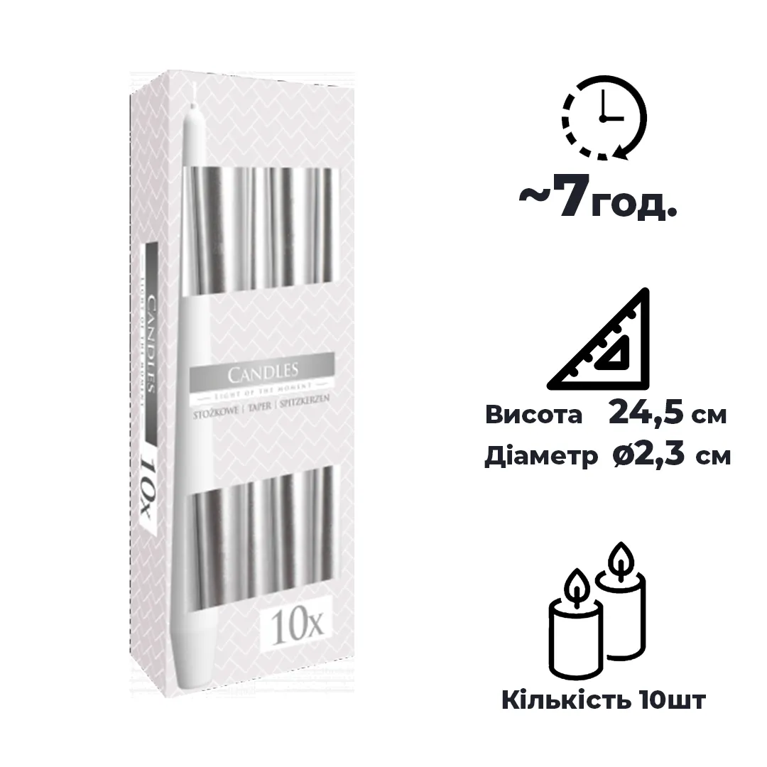 Набір свічок столових Bispol 10 шт. Срібний металік (s30-271)