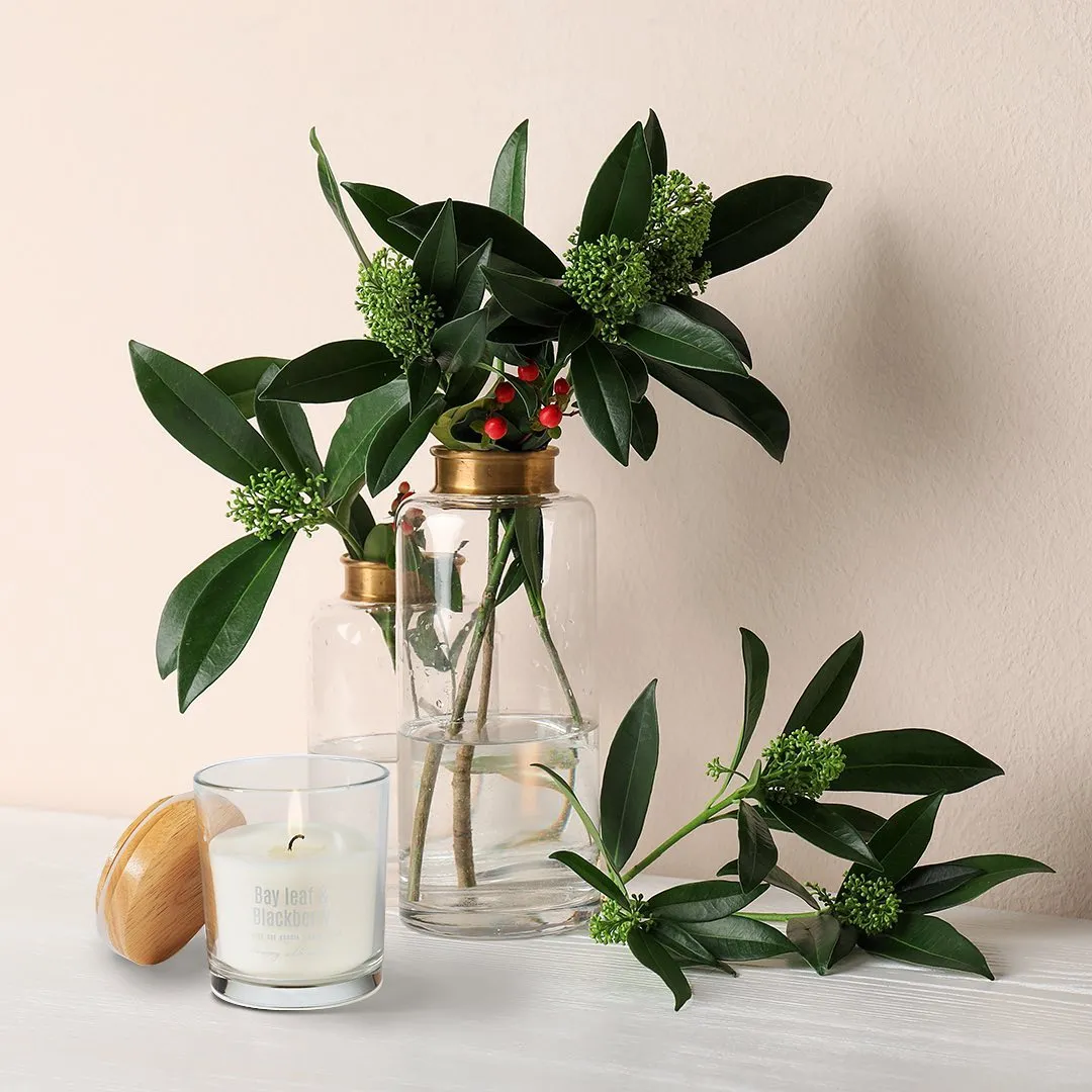 Ароматична соєва свічка Bispol в скляному стакані під дерев’яною кришкою Лавровий листок-ожина (sn73-325)