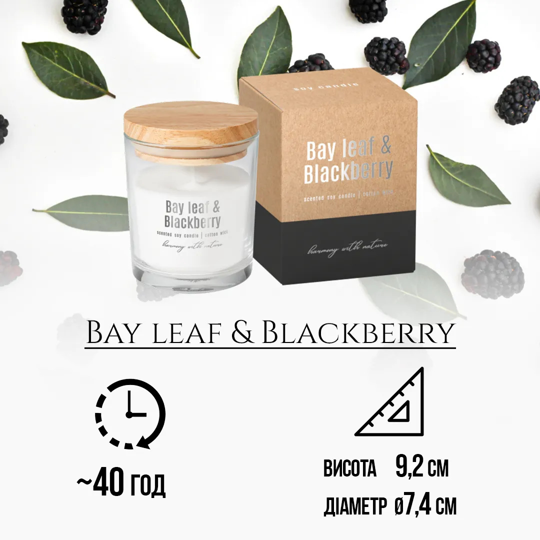 Ароматична соєва свічка Bispol в скляному стакані під дерев’яною кришкою «Лавровий листок-ожина» є сучасним і ефективним інструментом ароматерапії та аромадизайну, тому стане вишуканим доповненням декору Вашої оселі або офісу. Запашний шлейф ноток терпкої ожини поєднаних зі свіжістю лаврового листа одночасно підсолоджує і тонізує навколишню атмосферу. Переважно ягідна гамма, поєднана з пишністю яскраво зеленого листя, створює відчуття гармонії з природою, душевного спокою і, водночас, бадьорості. Крім неймовірного аромату, важливо і те, що свічка виготовлена з натурального соєвого воску, тому зовсім не випаровує токсинів і є абсолютно безпечною для Вашого здоров’я. Бавовняний ґніт забезпечує оптимальний рівень полум'я та чистоту горіння. Завдяки цьому свічка не стікає і не коптить. Під час горіння вона наповнить Ваш дім або будь-яке інше приміщення неймовірно приємним ароматом, який здатний нейтралізувати небажані запахи. До речі, такі свічки стануть вдалим варіантом для подарунку – доступно, оригінально і корисно. Що ще треба, аби зробити приємний сюрприз дорогій Вам людині!?