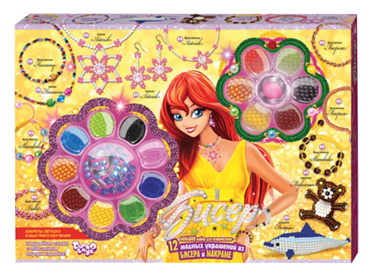 Набір для творчості 2в1 з бісеру і макраме містить все необхідне для створення ексклюзивних прикрас на кожен день і на особливий випадок.За допомогою набору ви зможете зробити своїми руками 12 модних прикрас з бісеру та макраме.У набір входить:• комплект різнобарвного бісеру;• детальна покрокова схема-інструкція;• різнобарвна нитка «джгут»;• металеві замки для кріплення виробів;• еластична нитка;• різнокольорові полімерні намиста;• дерев'яні намиста;• полімерні кристали;• мідний дріт.Підходить для дітей від 6 років.